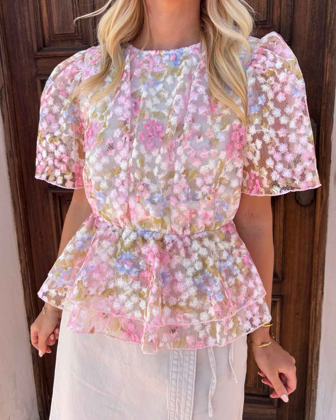 Y.A.S top leanna ss pristine/leanna aop