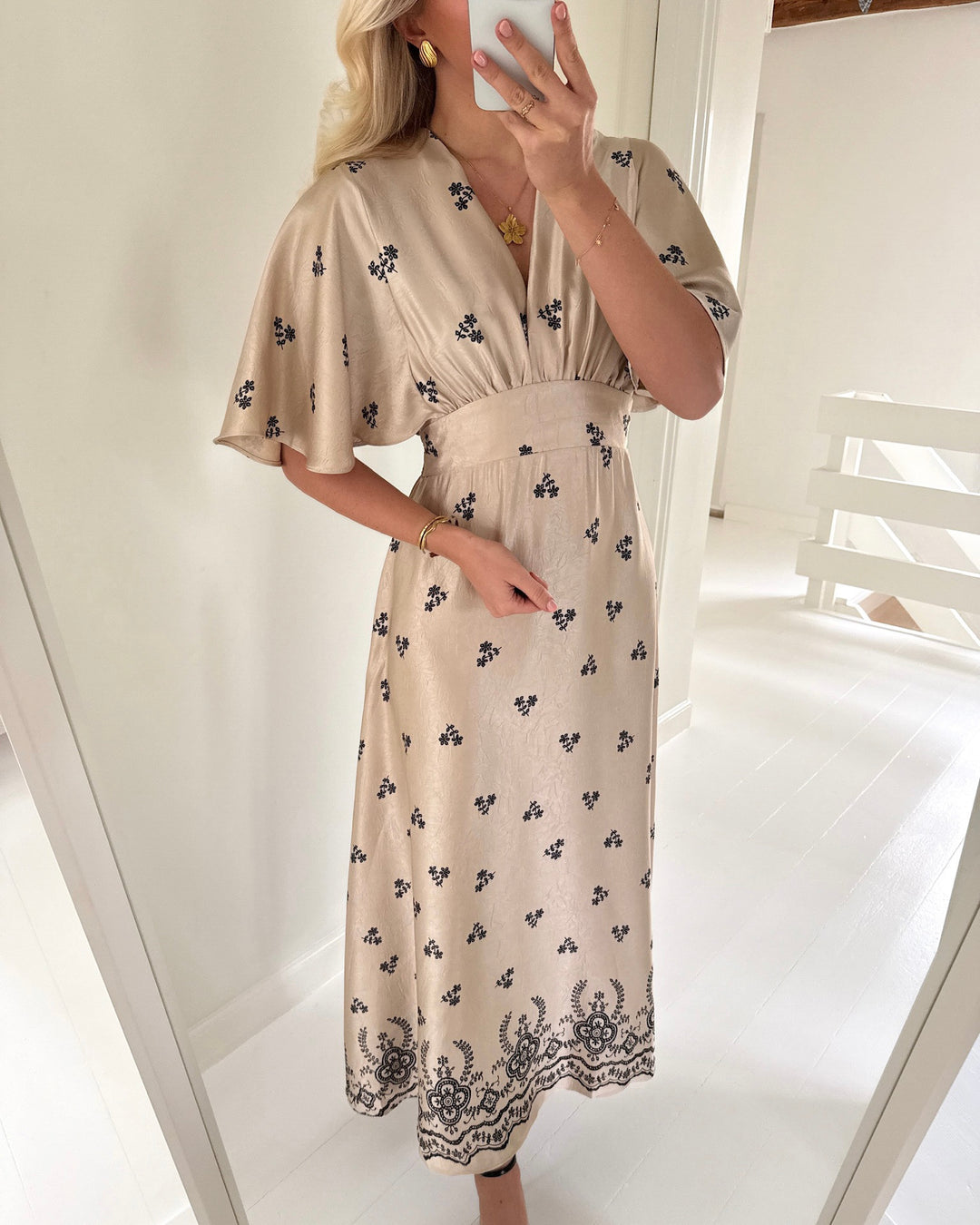 Sister's Point kjole gisela-dr24 champagne/black flower
