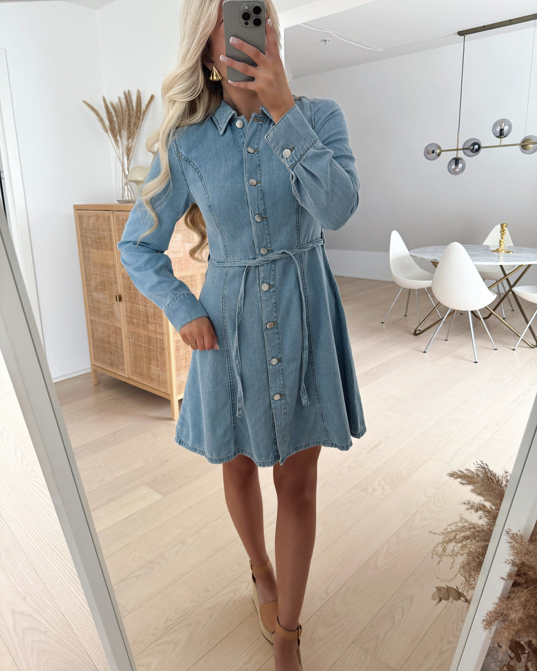 JDY kjole kamma ls belt short light blue denim