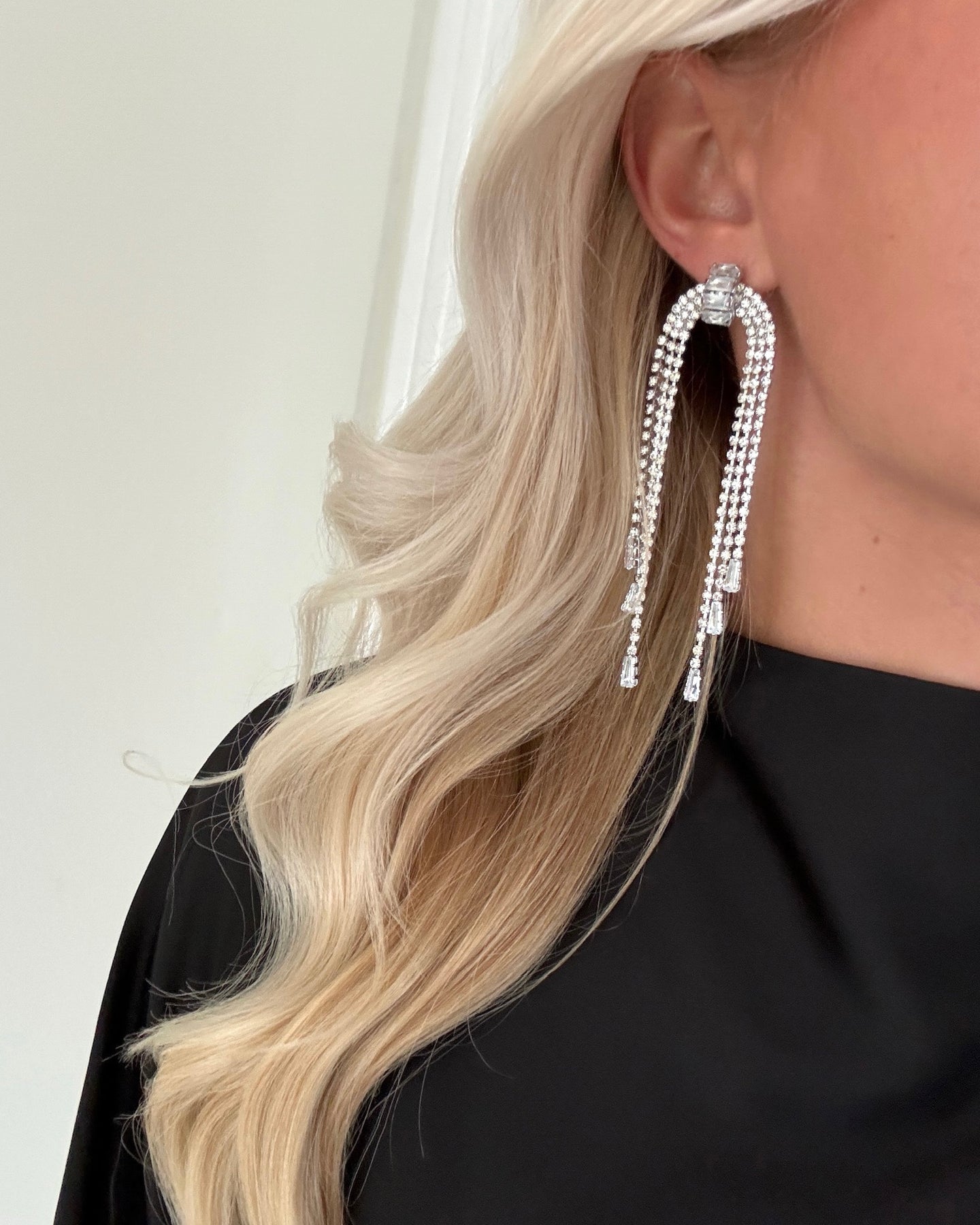 Skønne øreringe i en fin sølv farve med fine rhinesten.