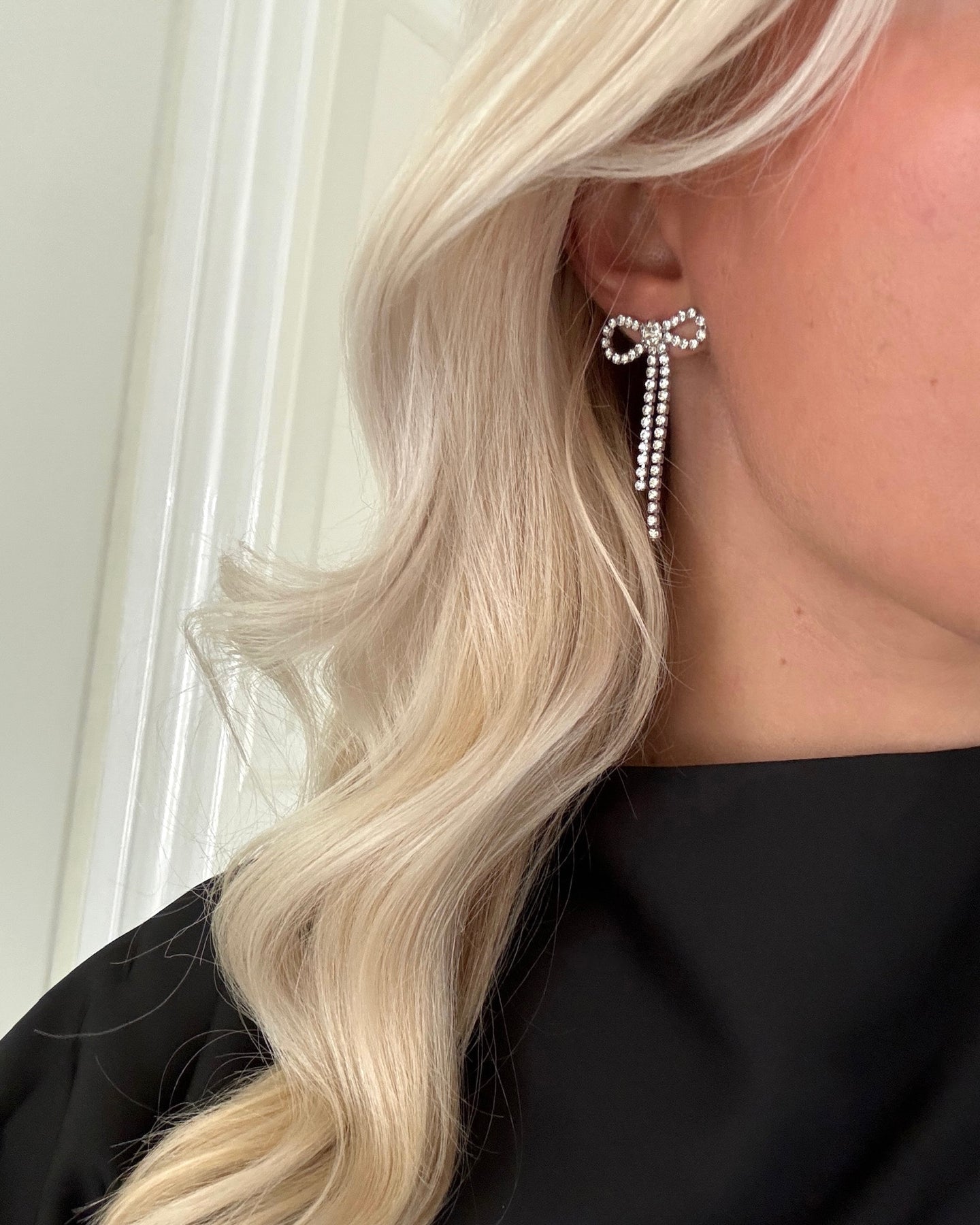 Elegante sløjfe øreringe i sølv med fine rhinesten.