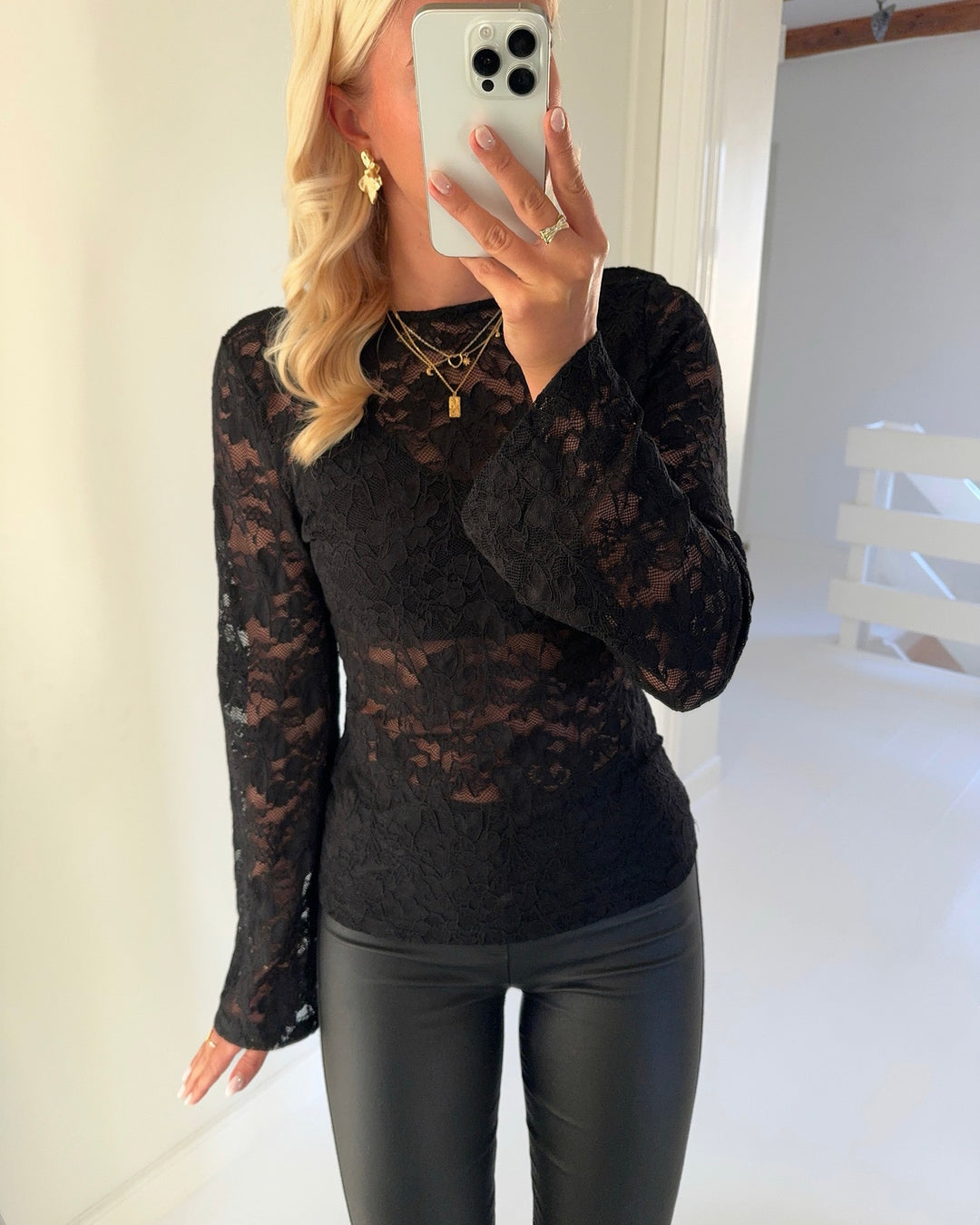 Pieces t-shirt olline ss lace black - FORUDBESTILLING LEV. UGE 50
