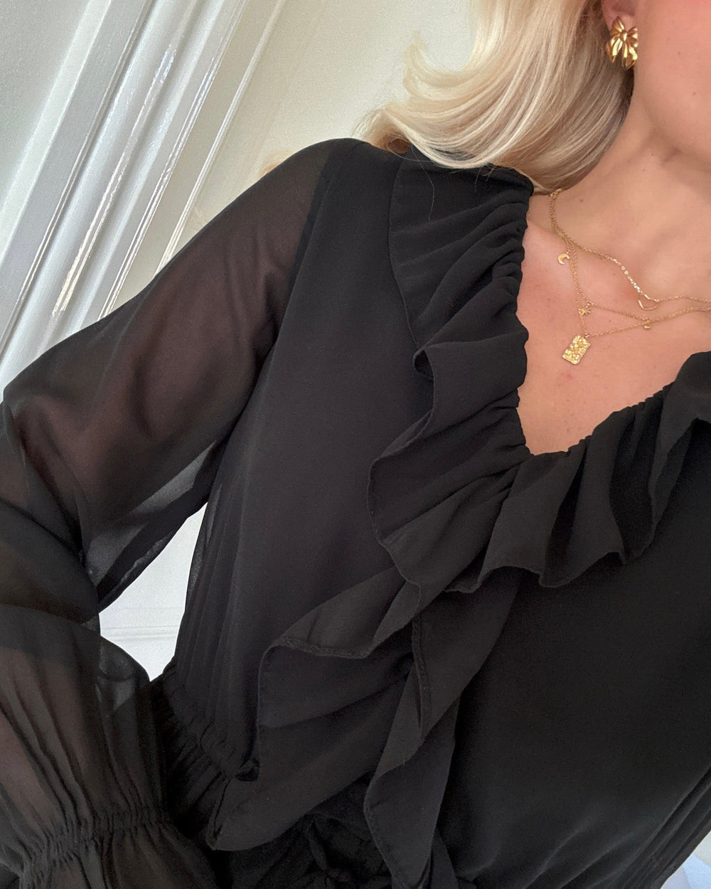 Vero Moda kjole chili ss frill maxi wvn exp cloud dancer/gold