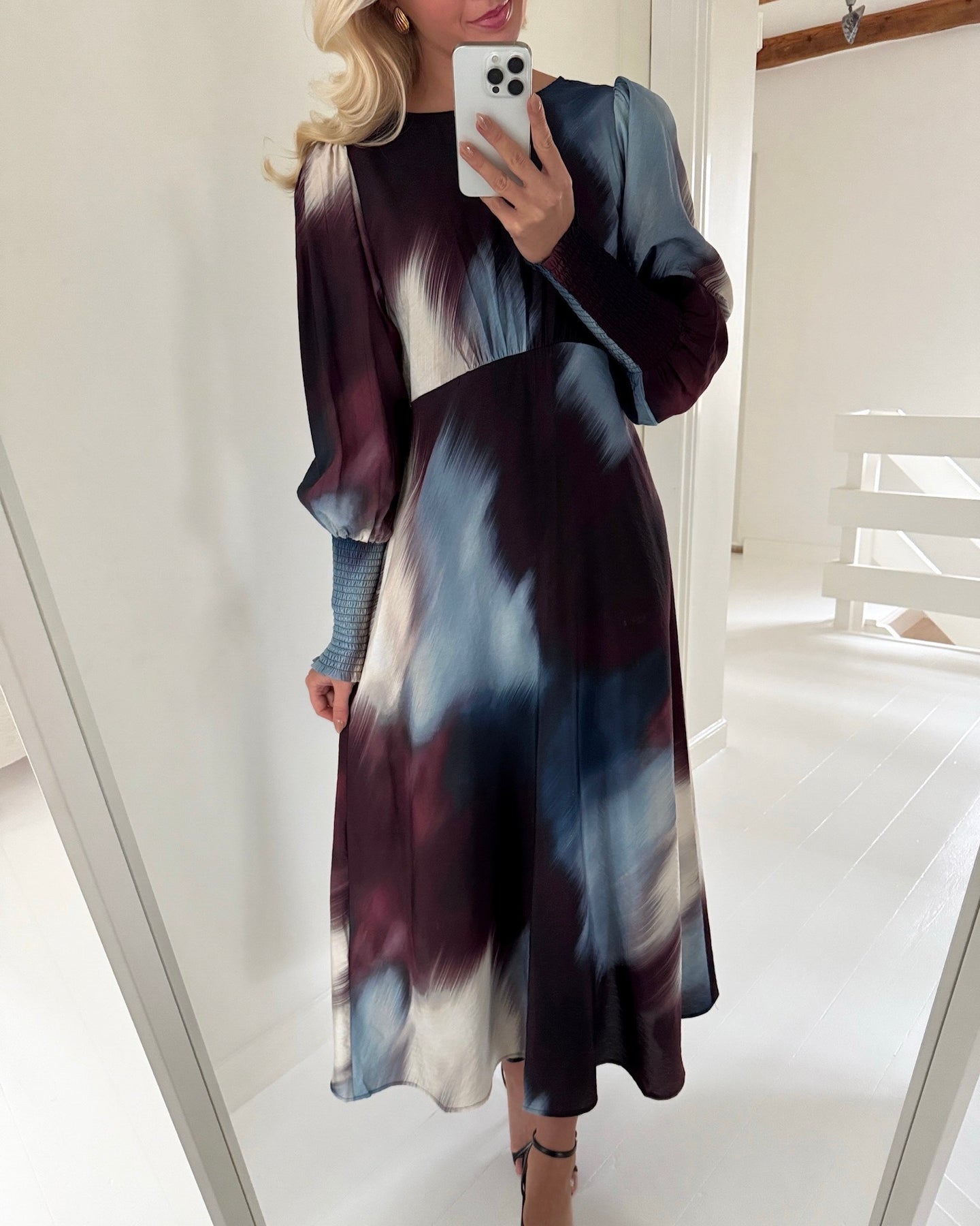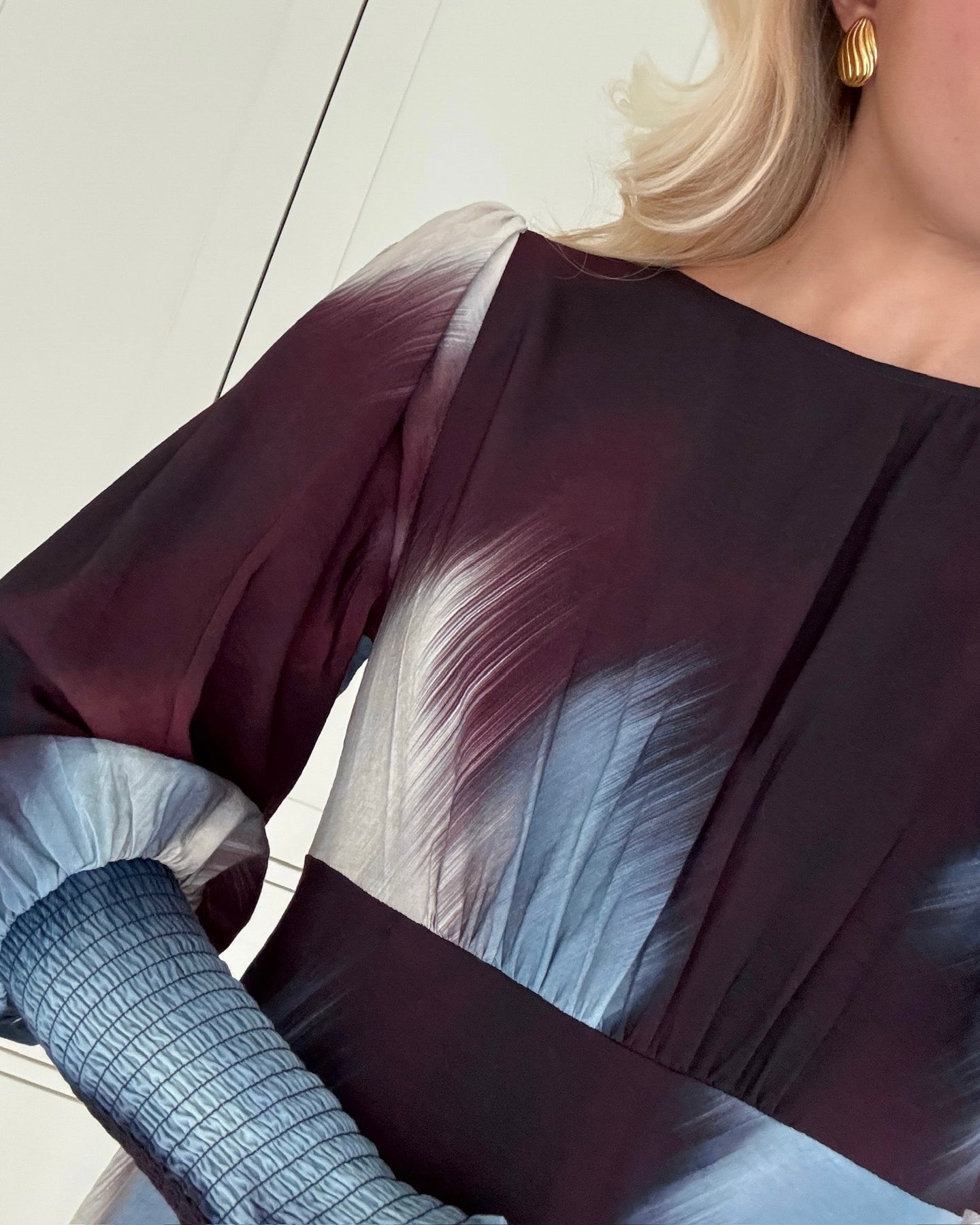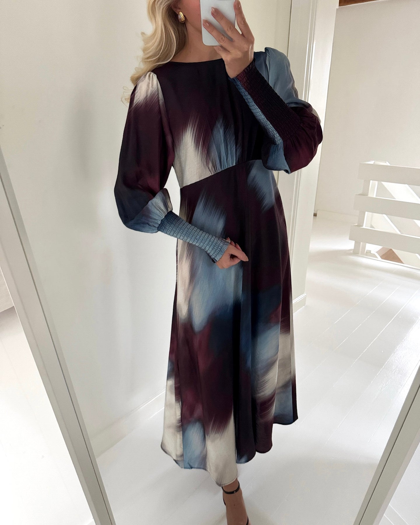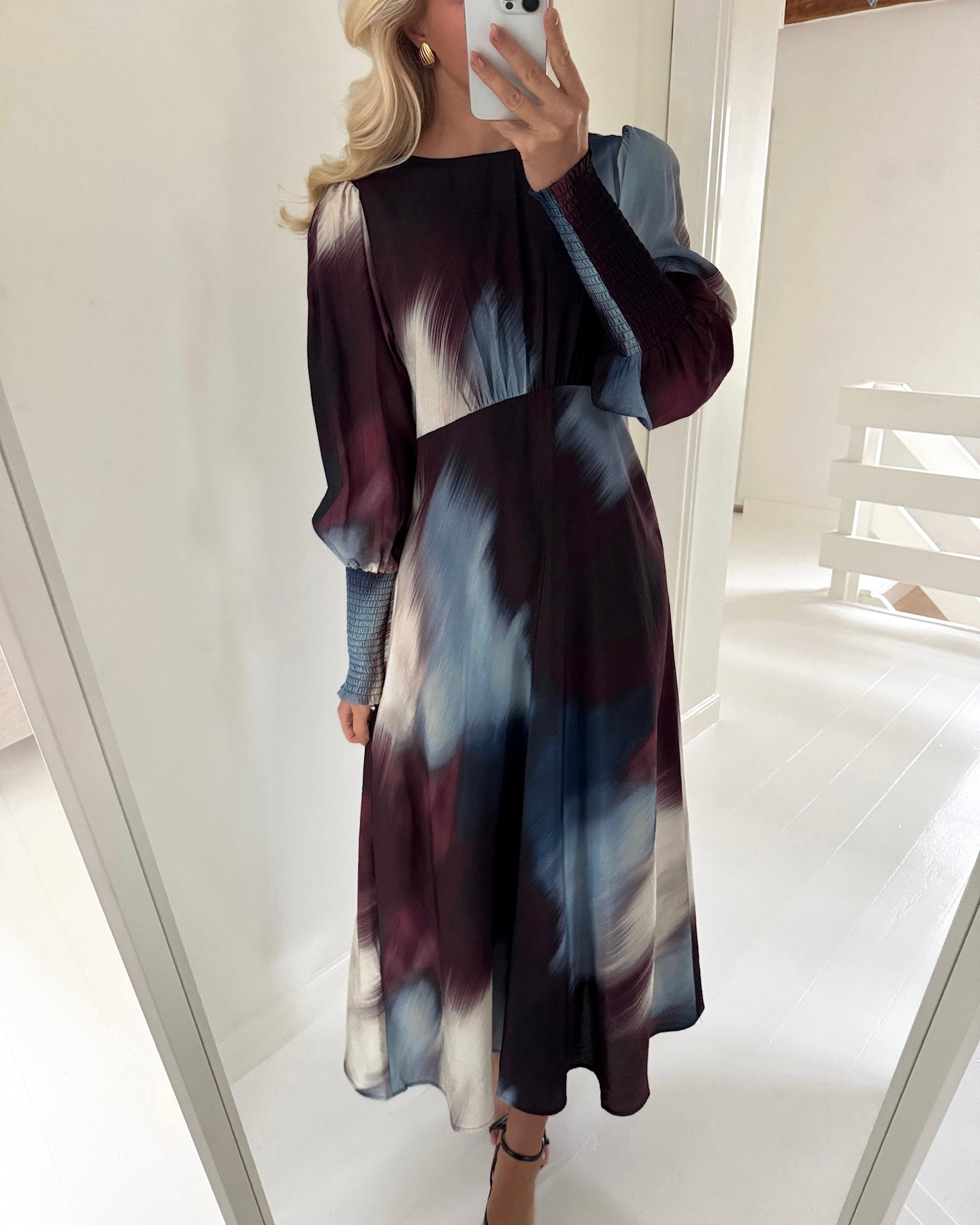 Kjolen har lange ærmer, rund hals og lukkes med lynlås i nakken.