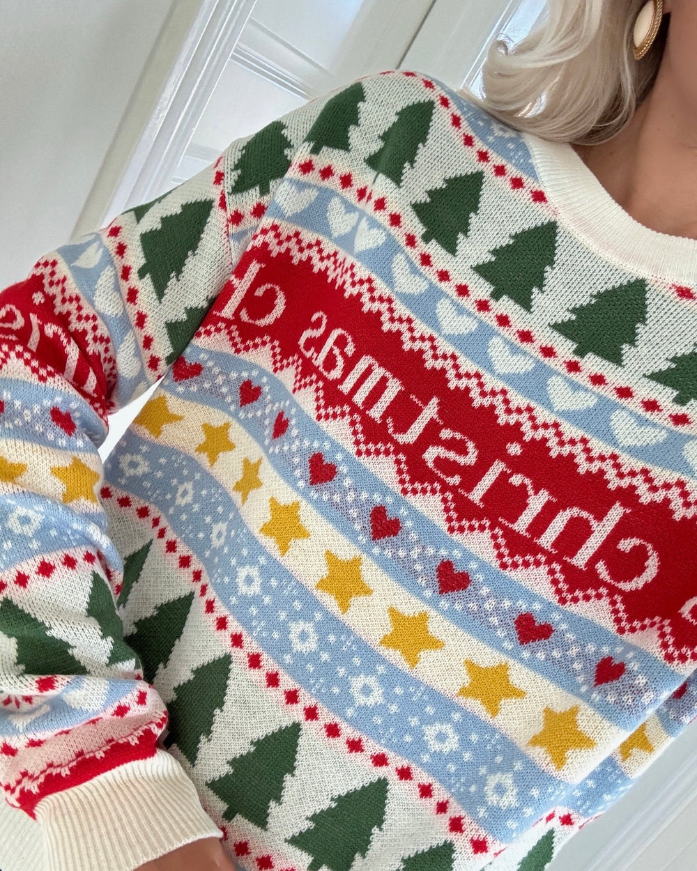 Vero Moda striktrøje happy frostlight xmas birch/w. artwork