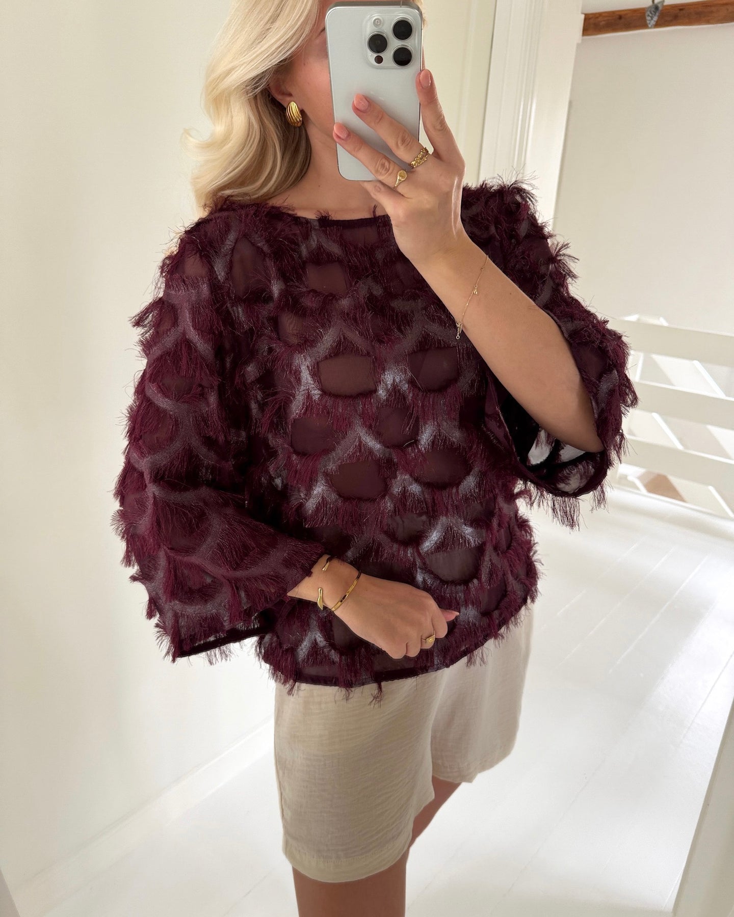 Den fineste top i en bordeaux farve med de fineste detaljer.