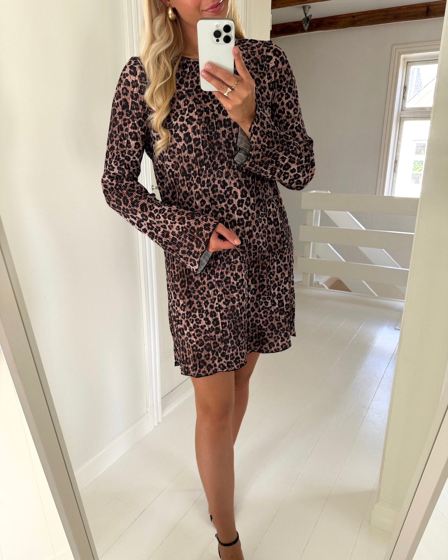 Kjolen har rund hals og er løs i pasformen, samt knap til lukning i nakken og lange ærmer.