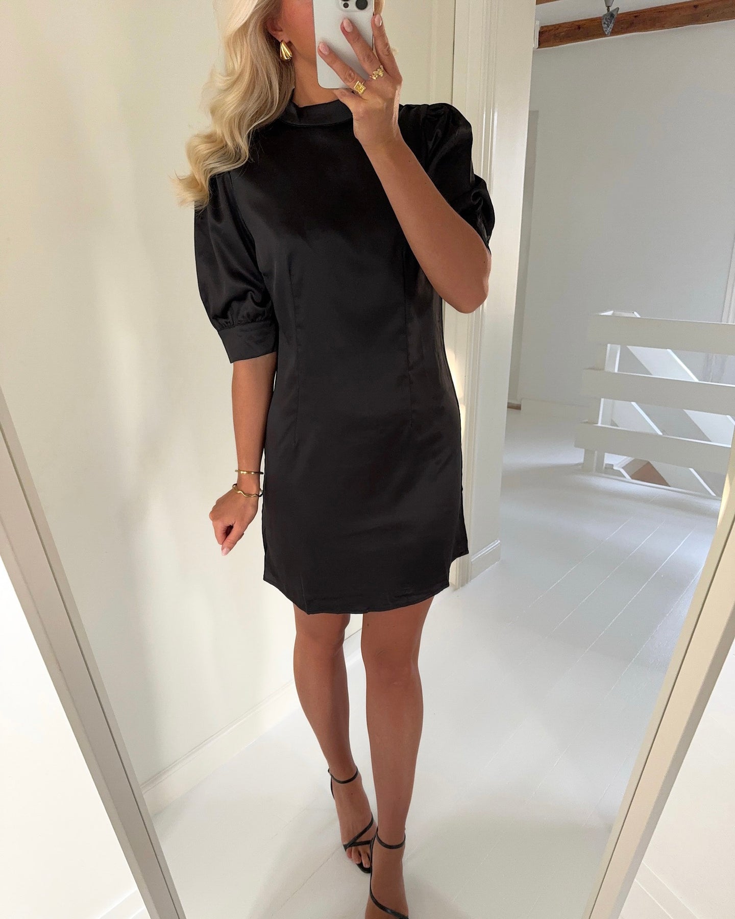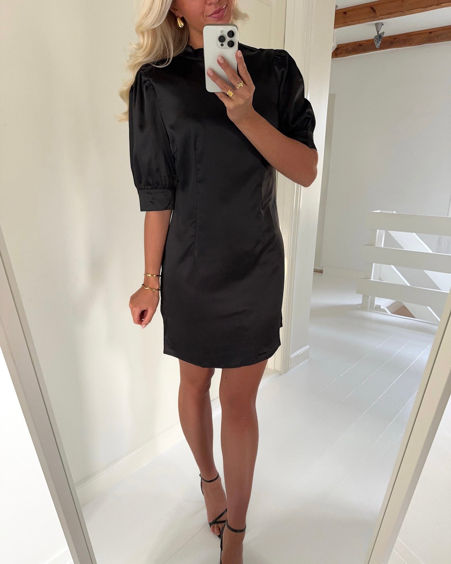 Skøn kjole i en klassisk sort farve med fine puffede ærmer.