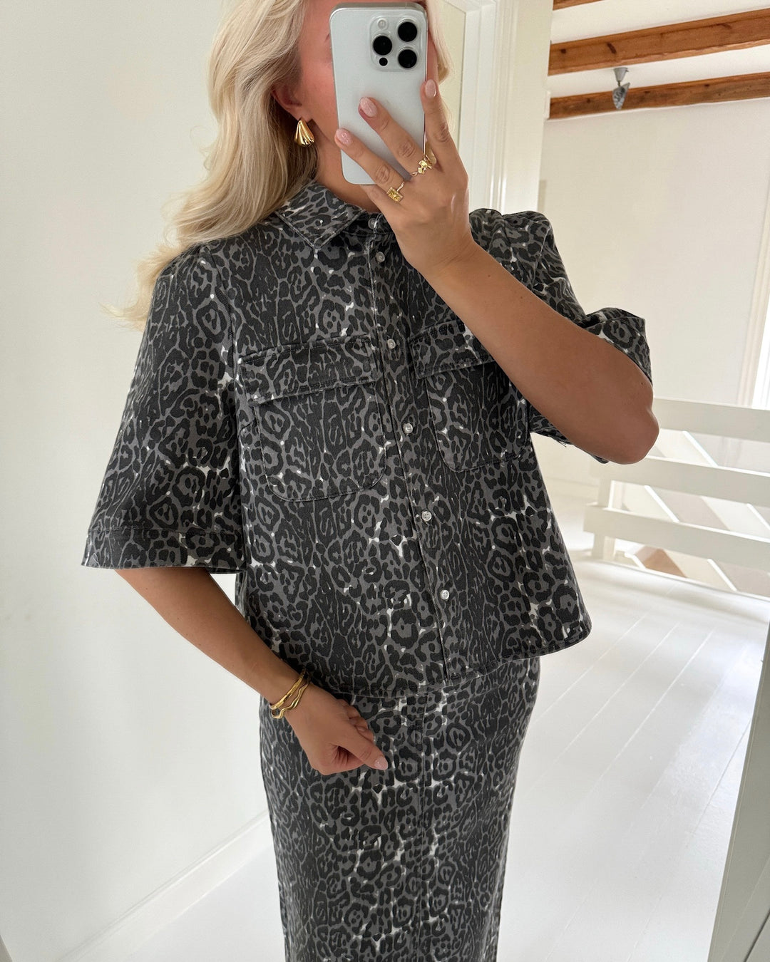 Vero Moda skjorte bella 2/4 leo eiffel tower/leopard