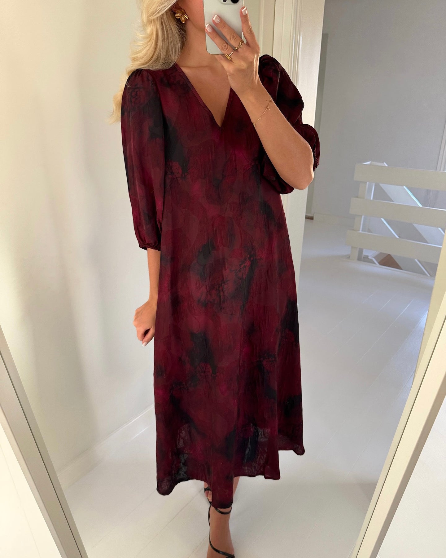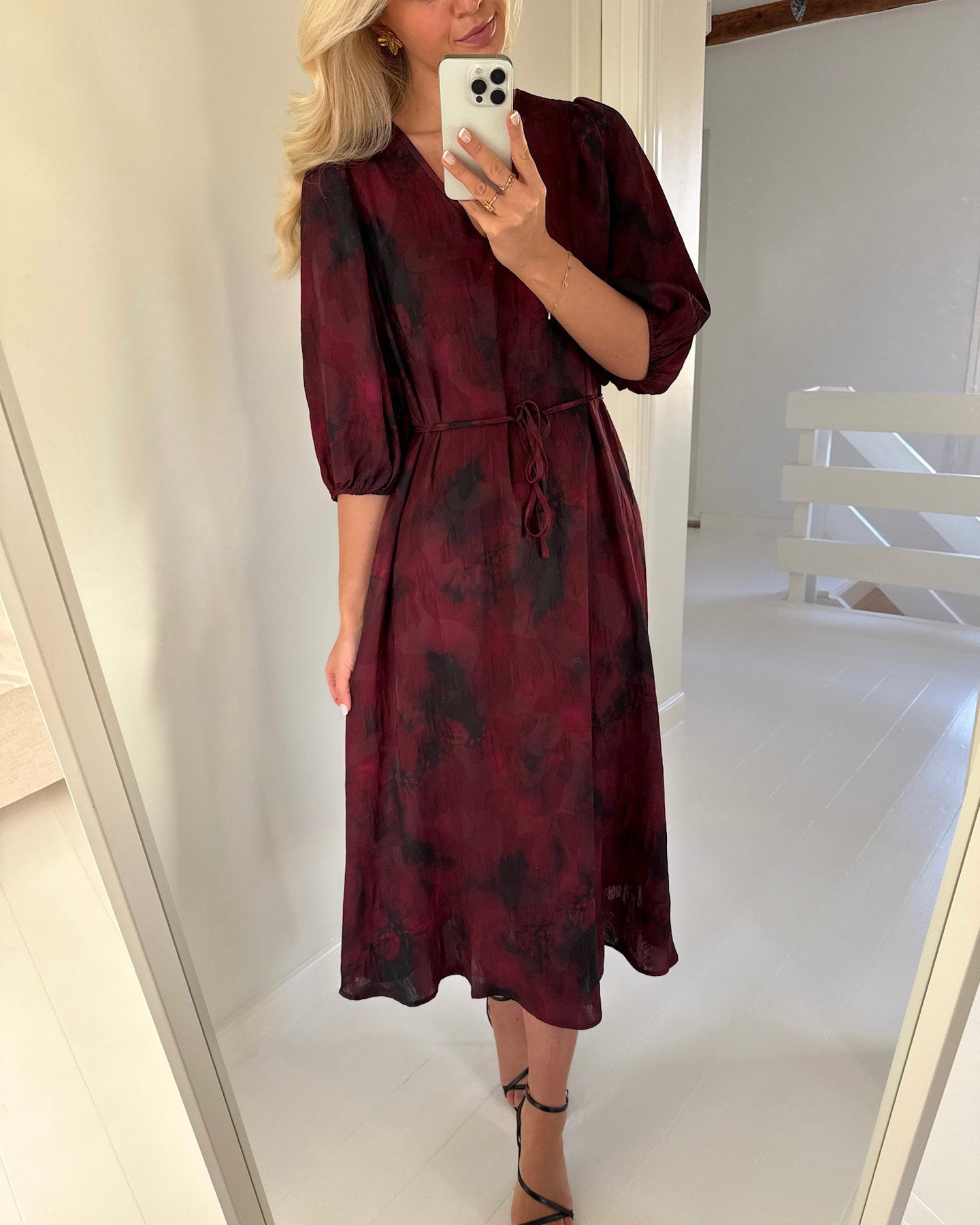 Flotteste kjole i sort med eksklusivt bordeaux print.