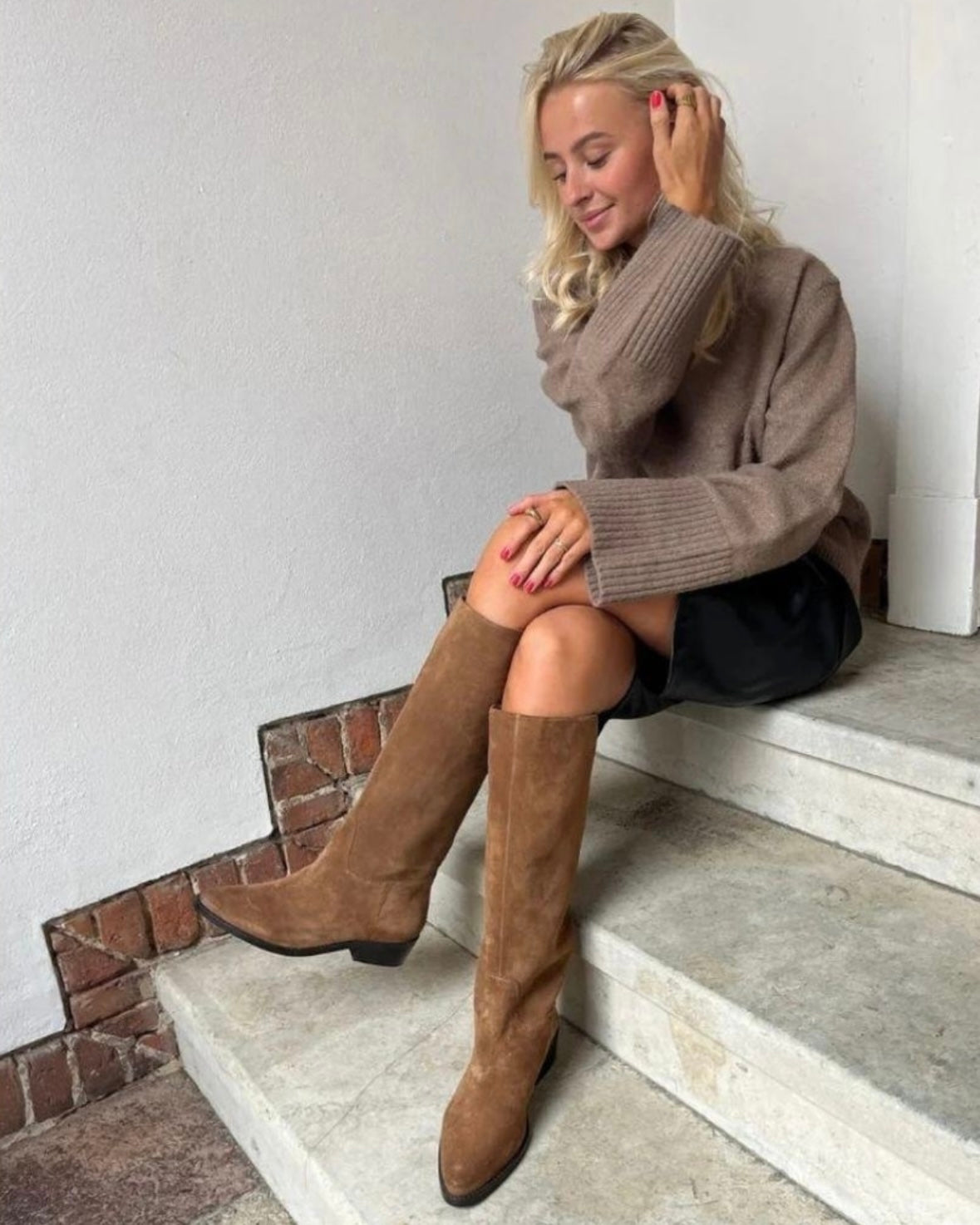 Lange elegante ruskindsstøvler i den flotteste cognac farve.