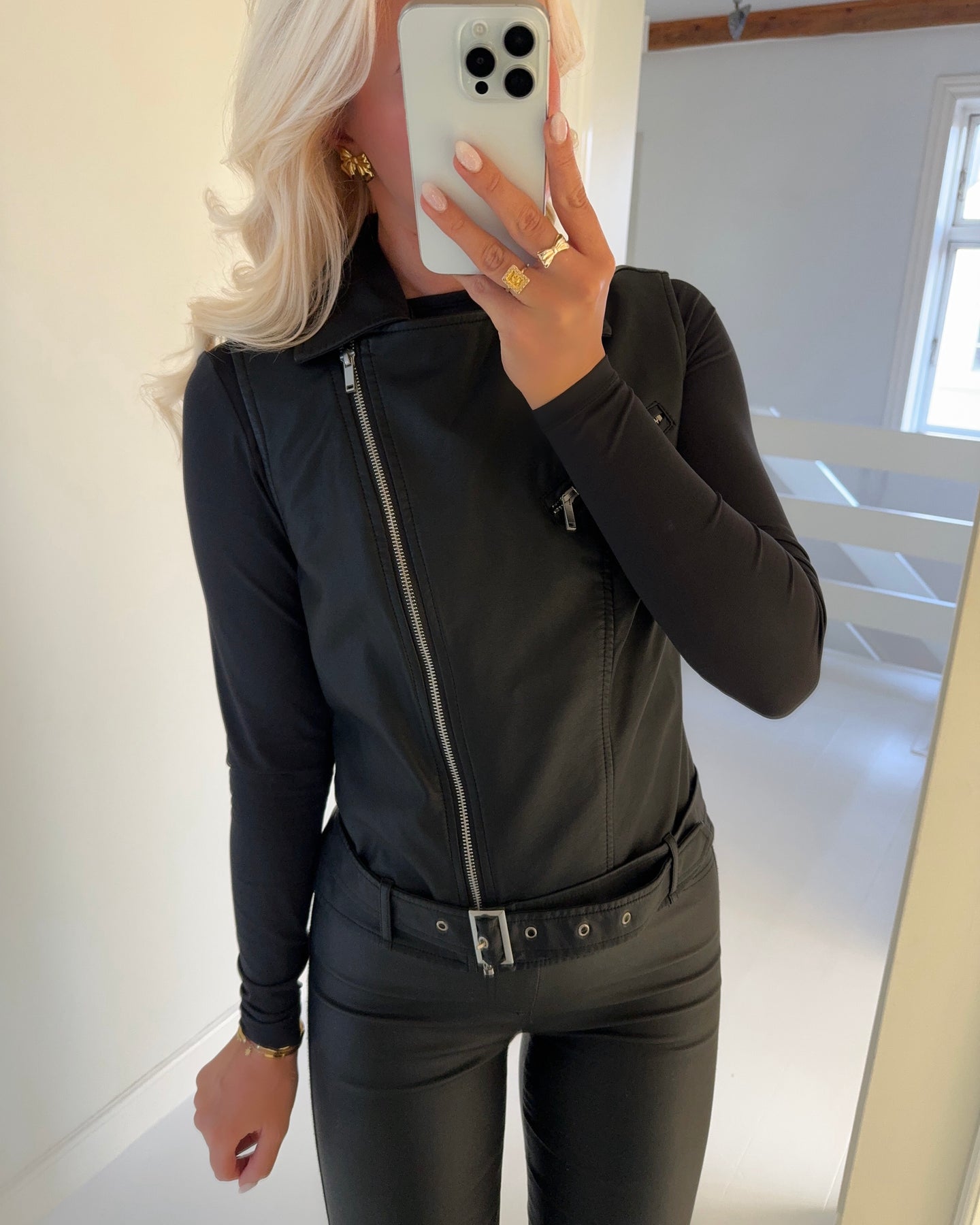 Vest i klassisk sort af kunst læder med de fineste detaljer.
