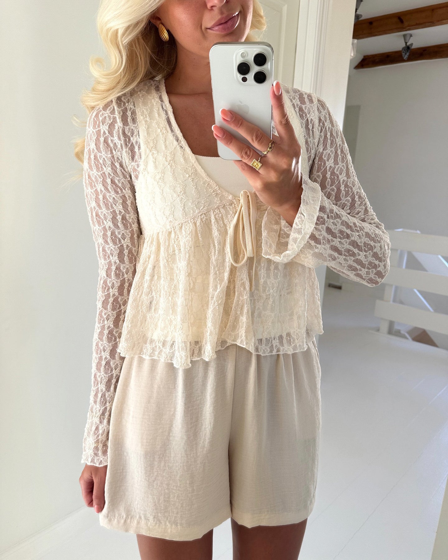 Lækker cardigan i en smuk råhvid farve med blonder.