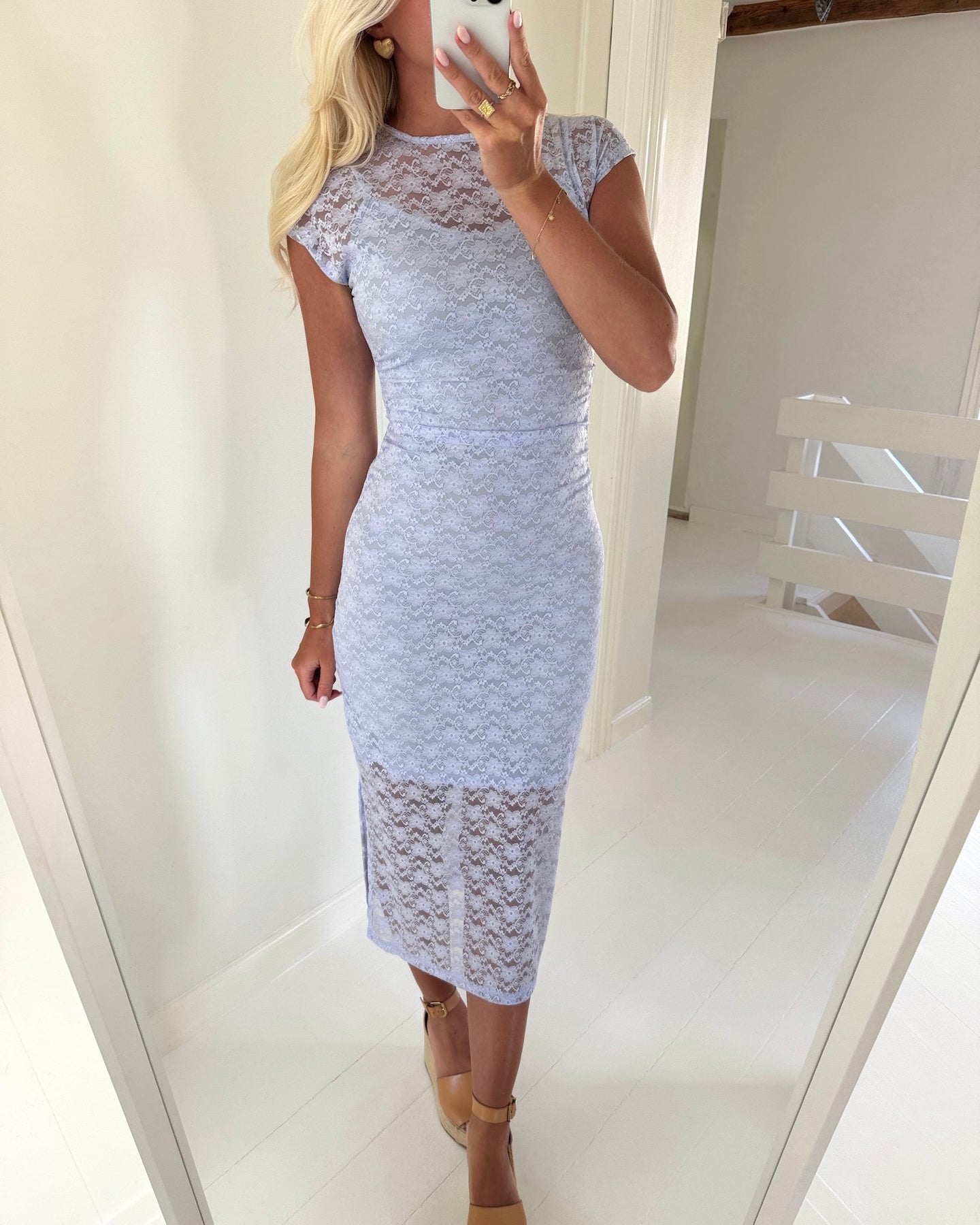 Fineste kjole i en smuk pastel lilla farve med søde blondedetaljer.