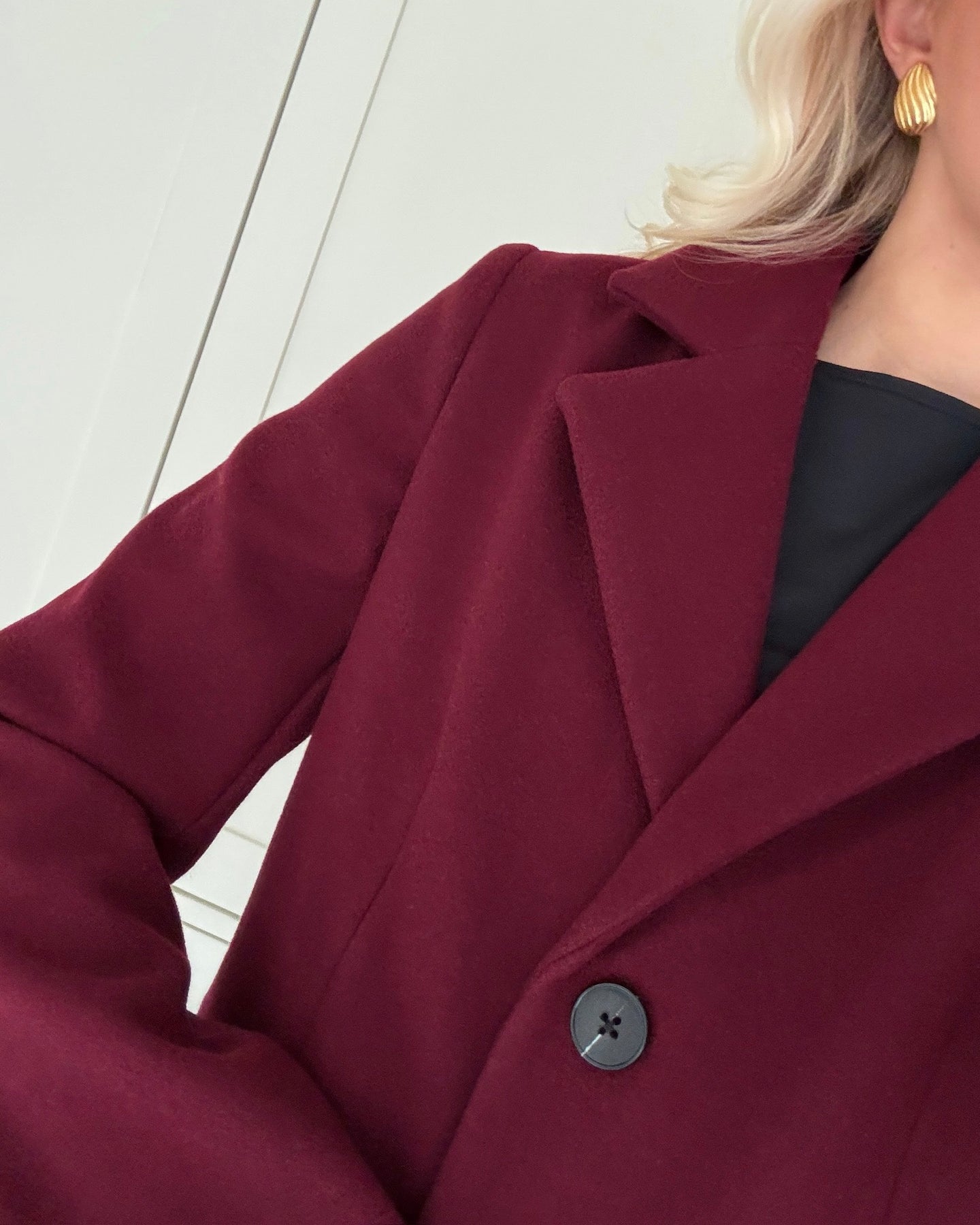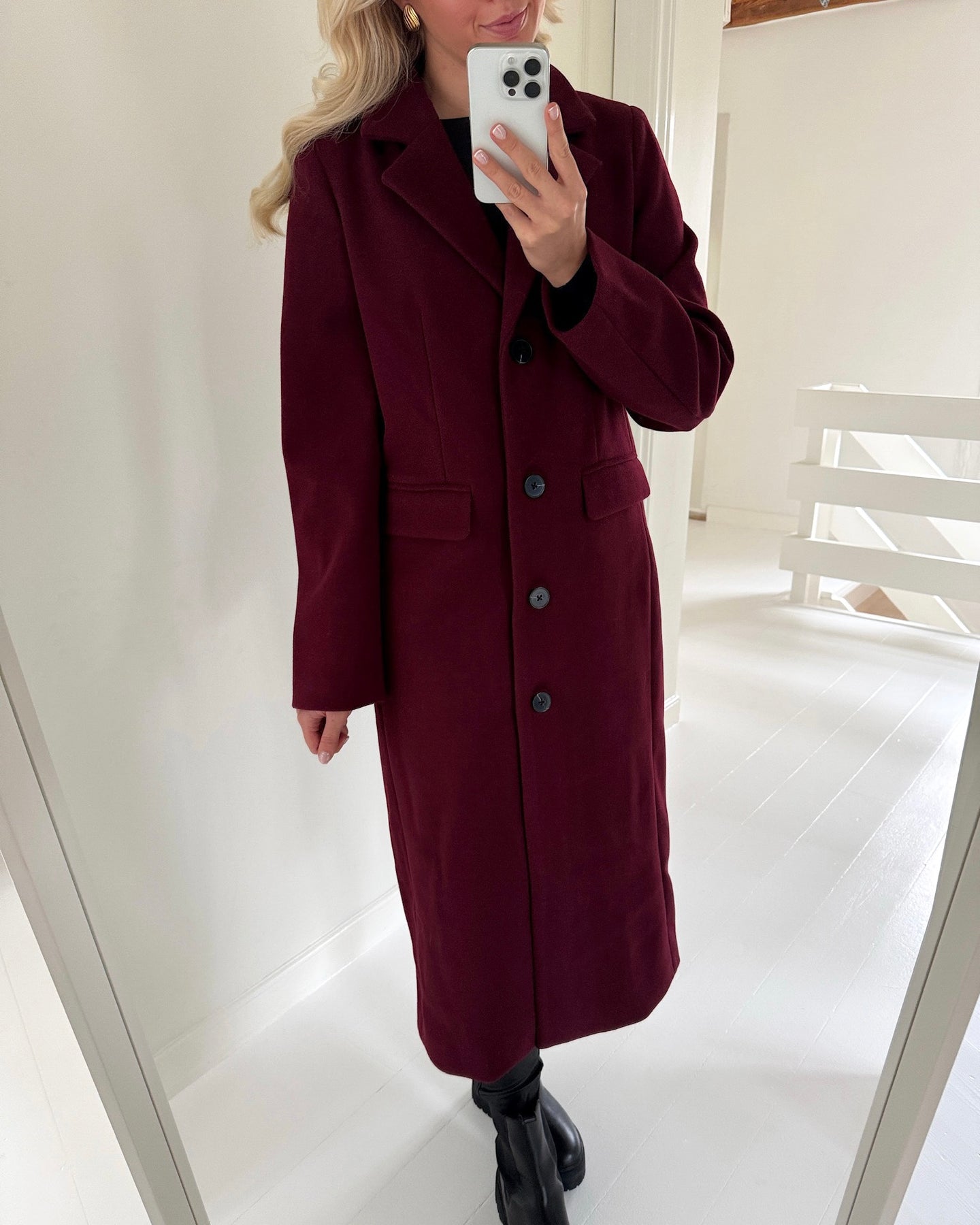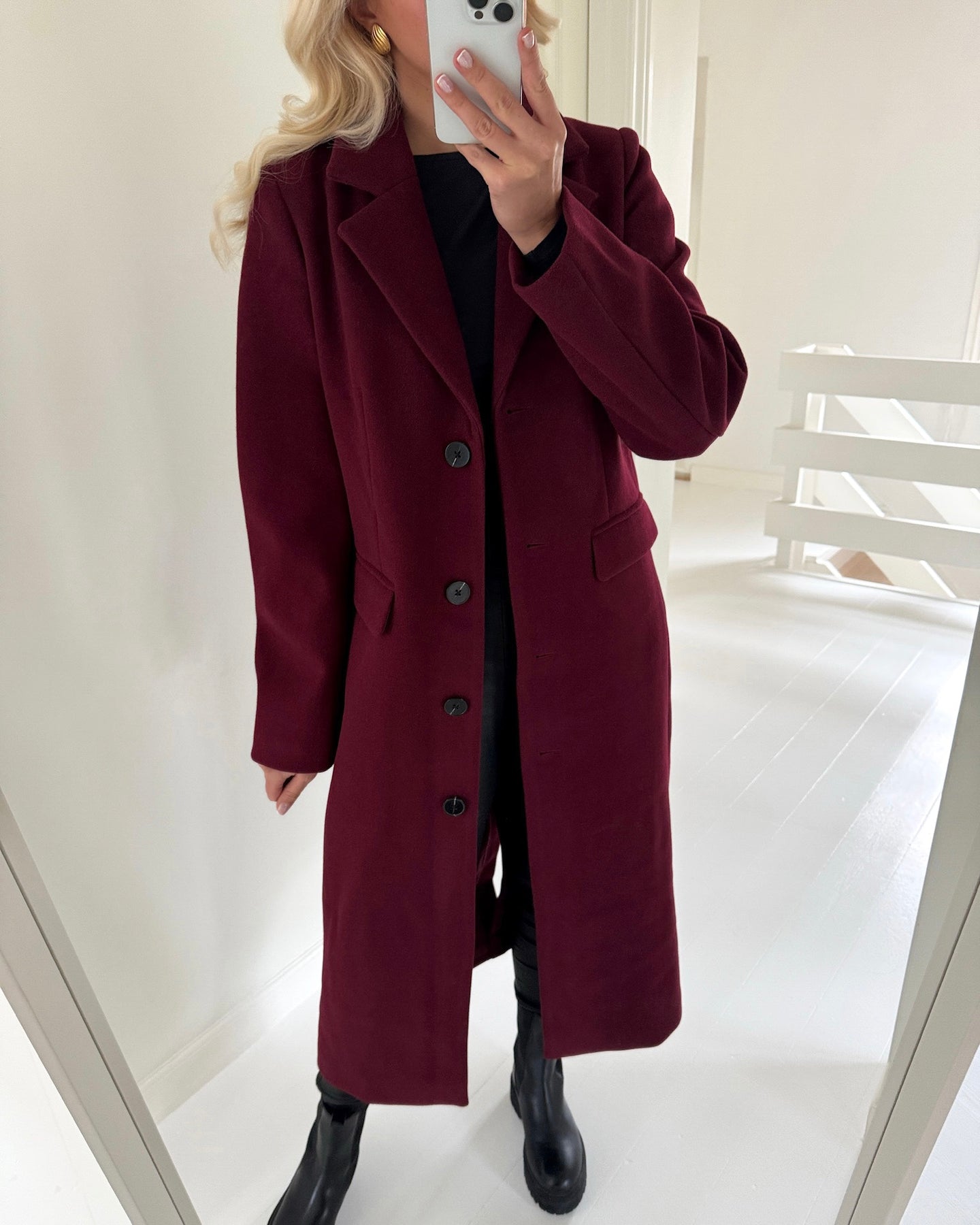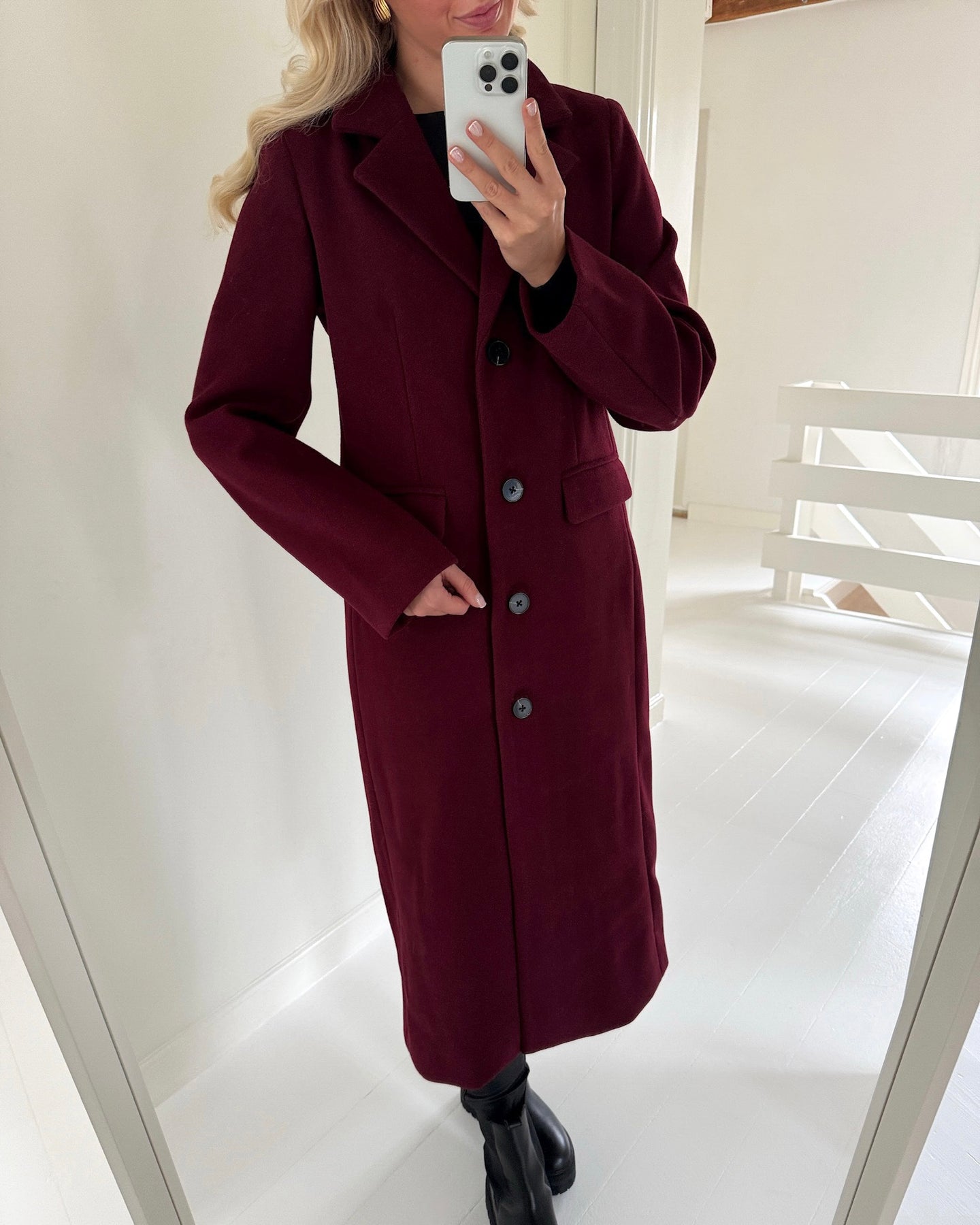 Feminin frakke i den flotteste bordeaux farve.