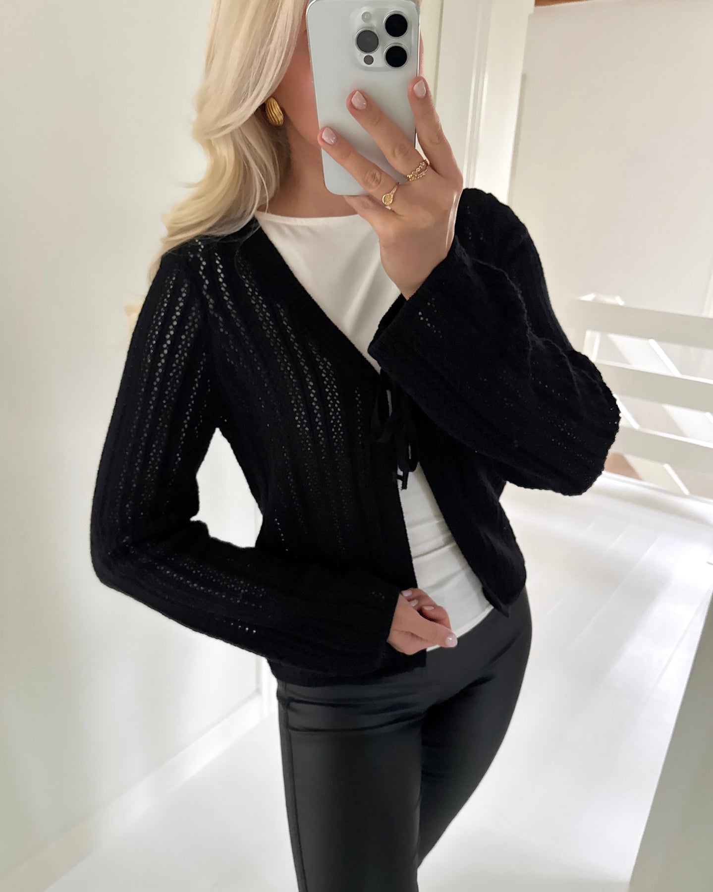 Skøn cardigan i en klassisk sort farve i sødt strikket stof.