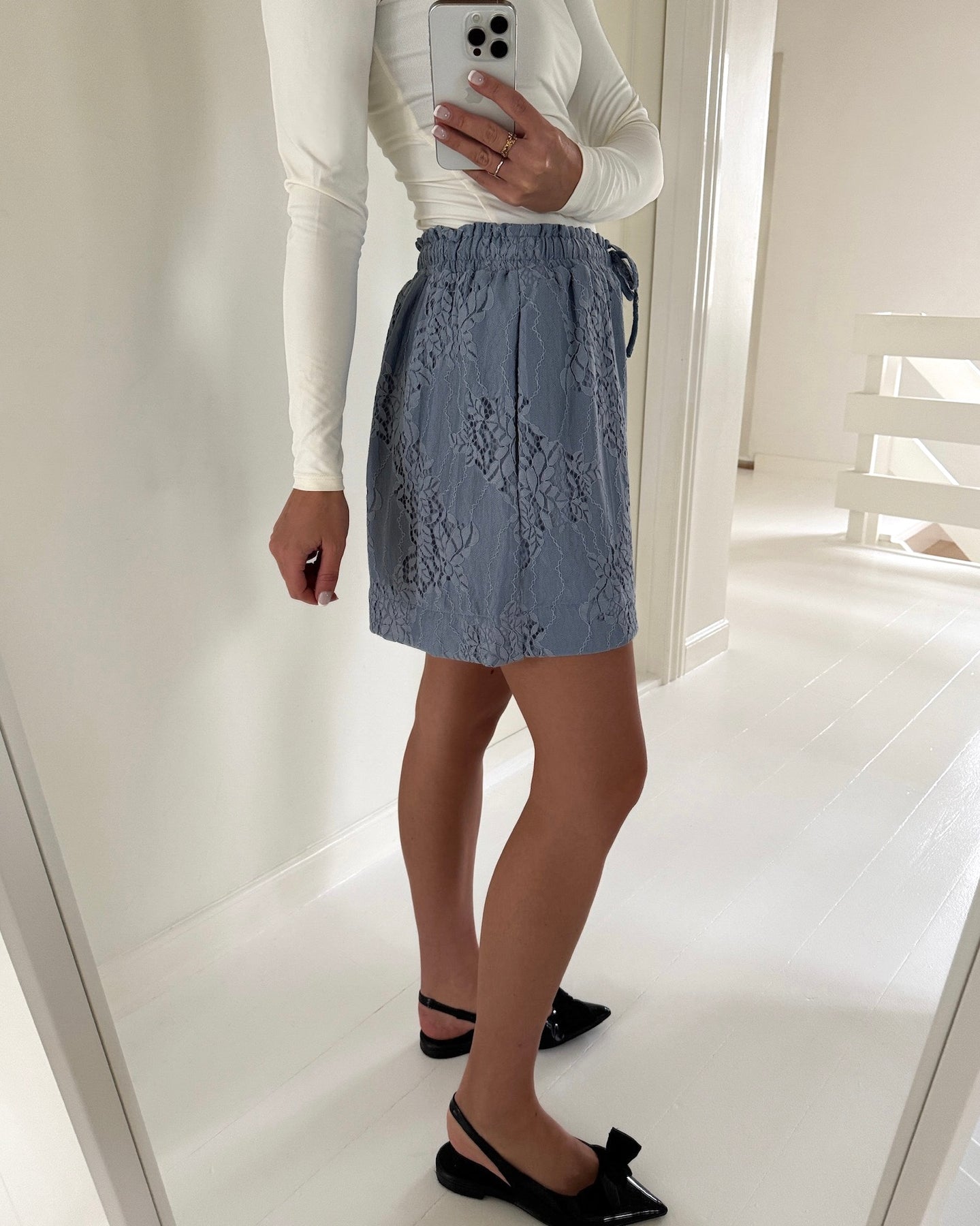 Lækre shorts i en sød blå farve med fine blondedetaljer.