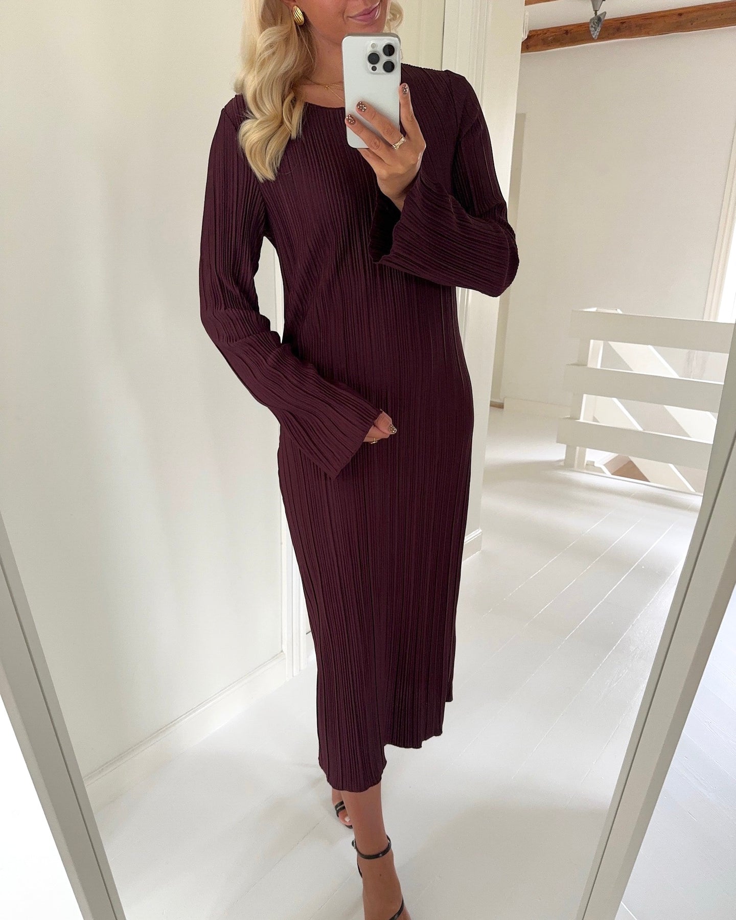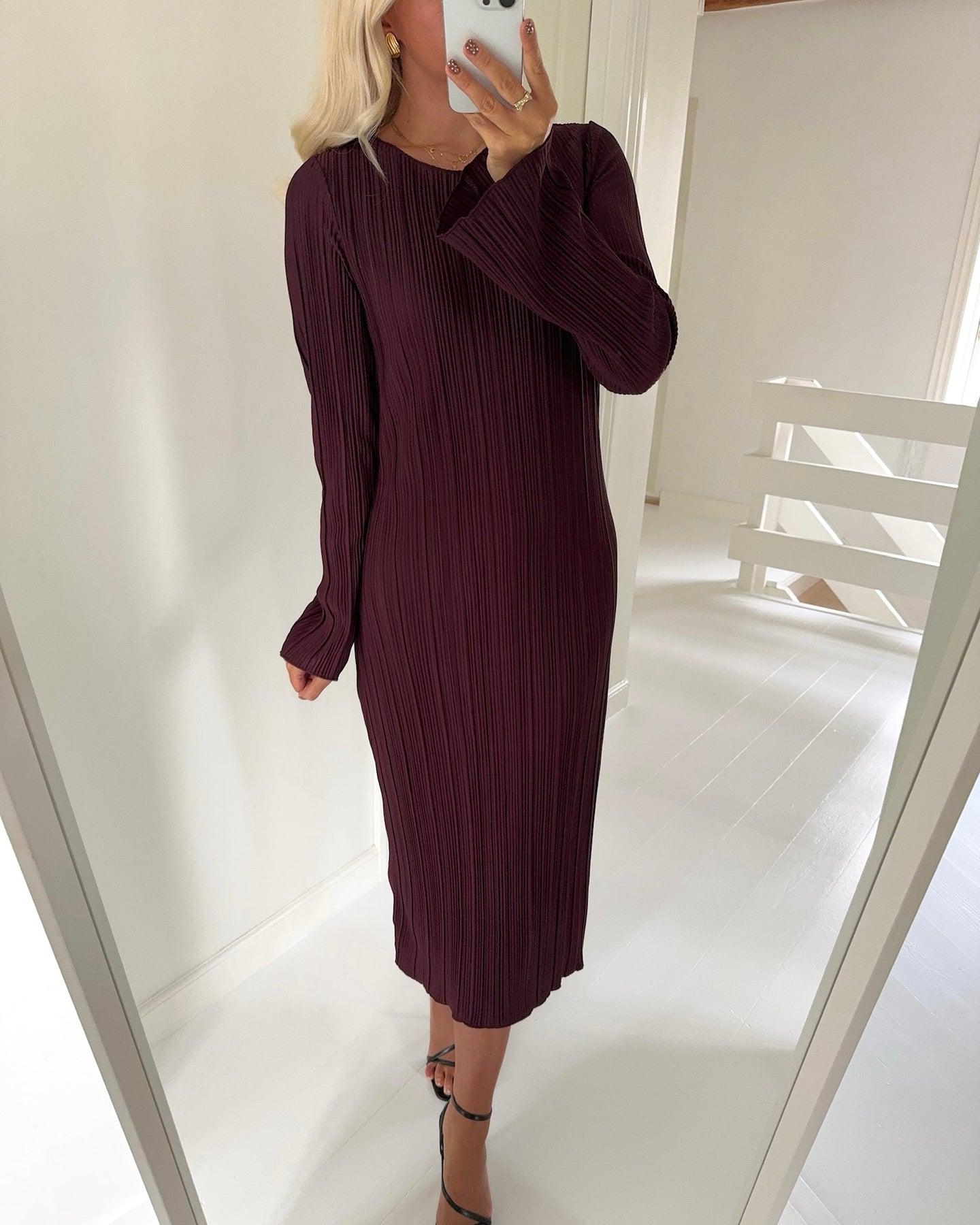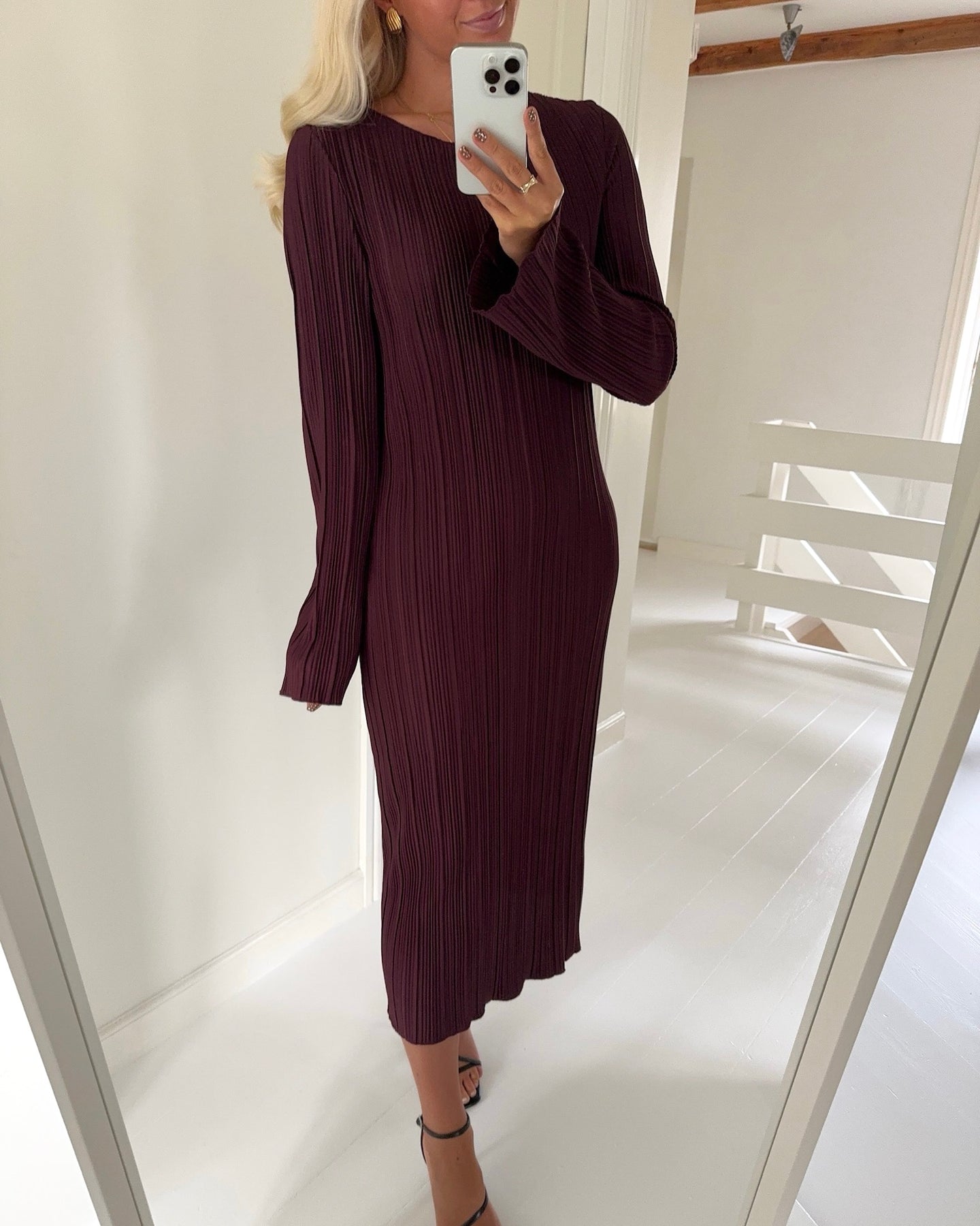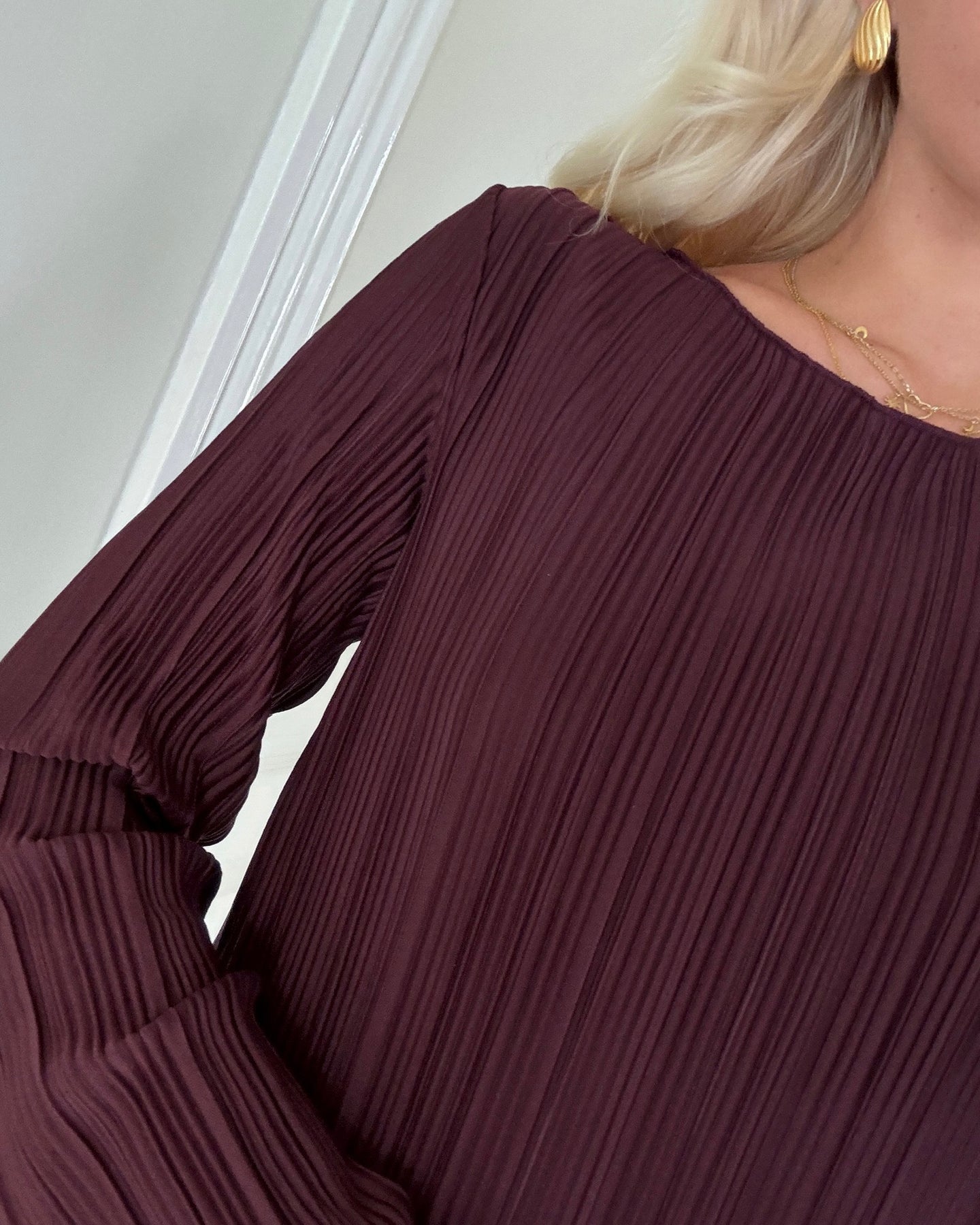 Kjolen har rund hals, lange løse ærmer og en skøn rummelig pasform.