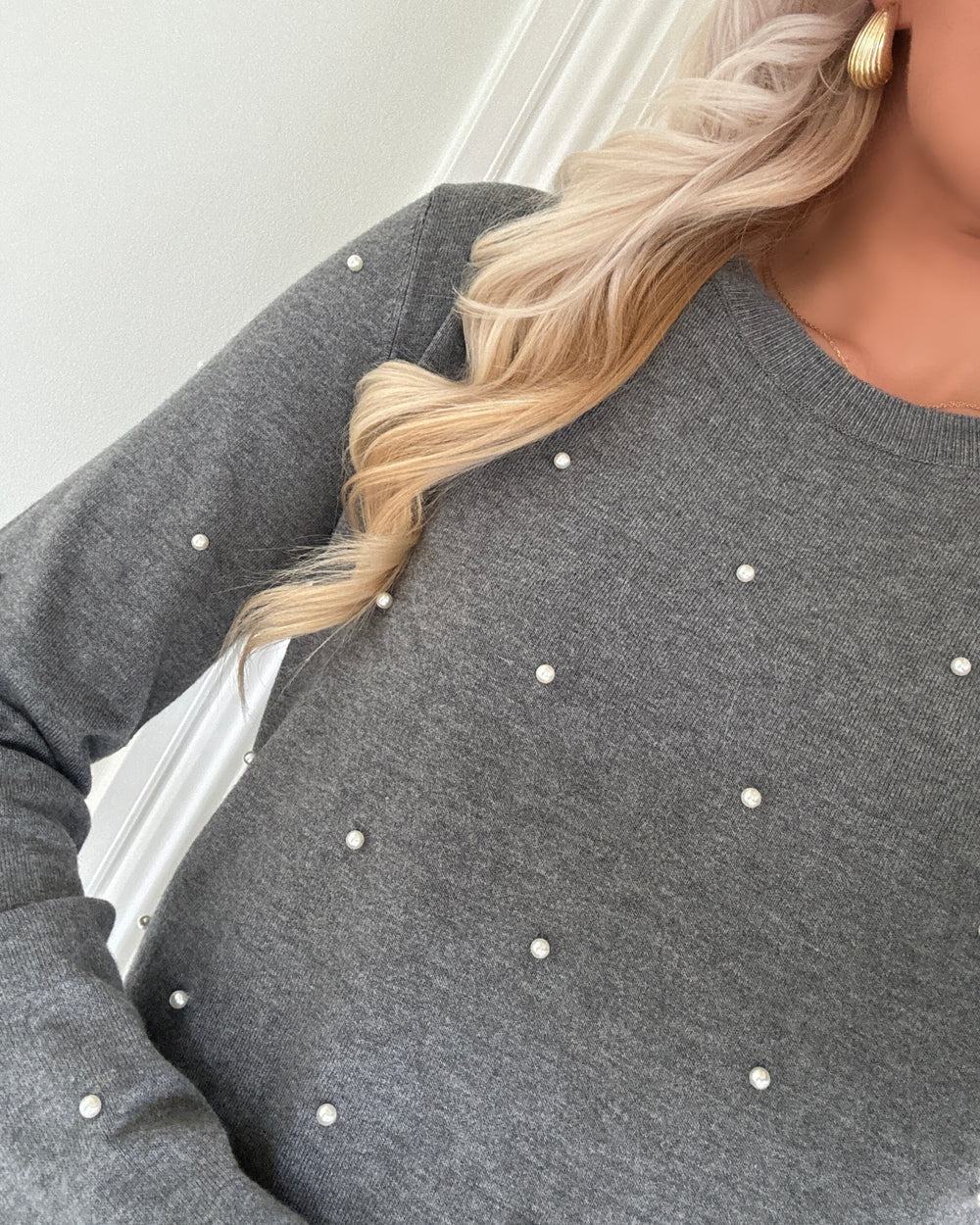 Grå sweater med lange ærmer og rib-kant samt rund hals.