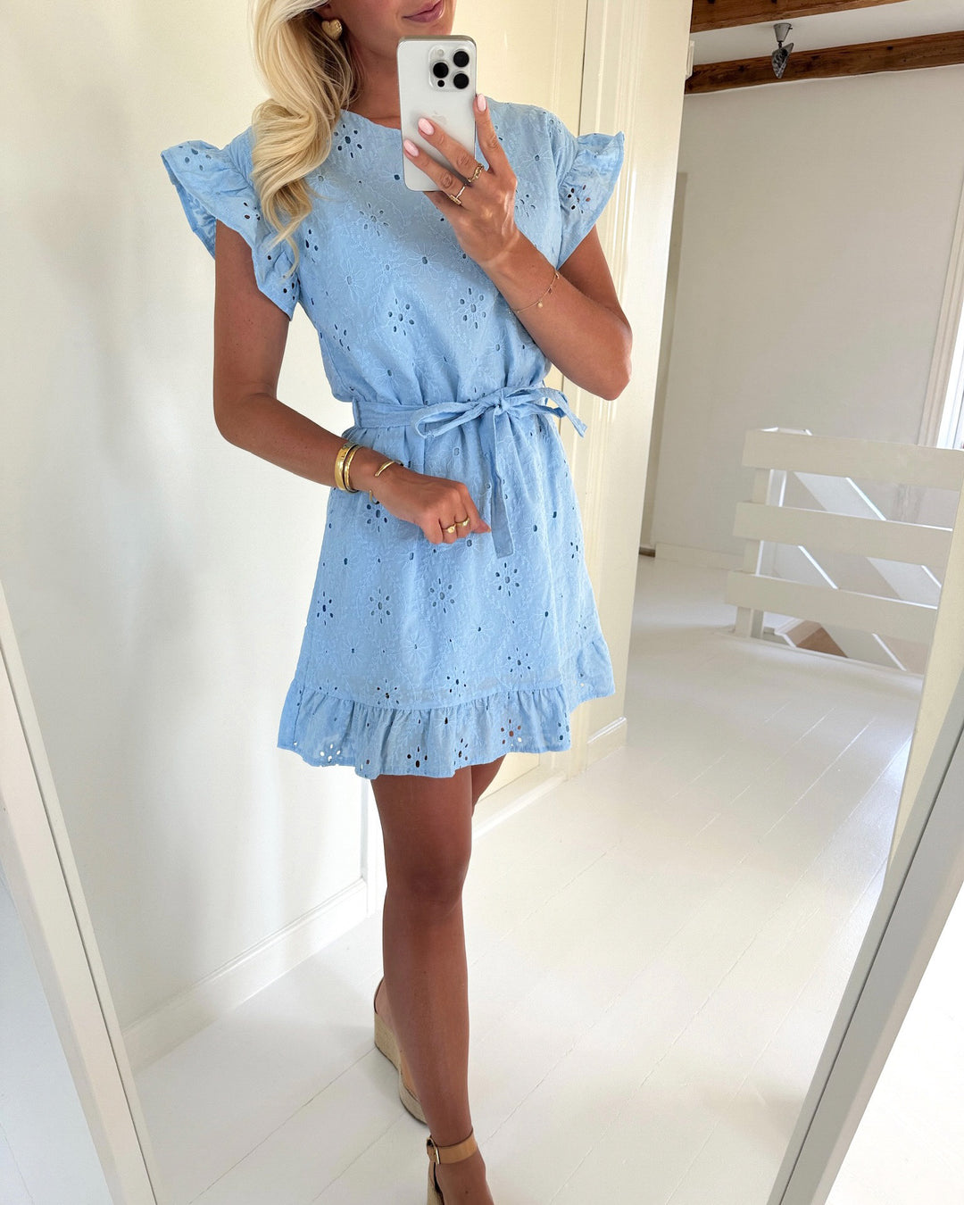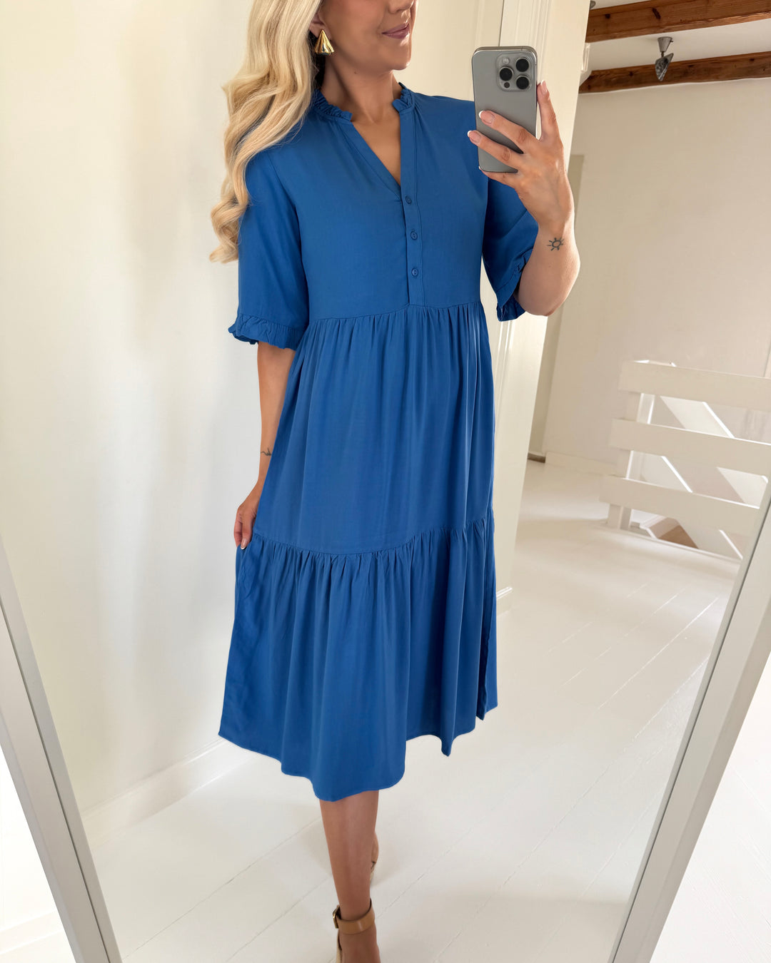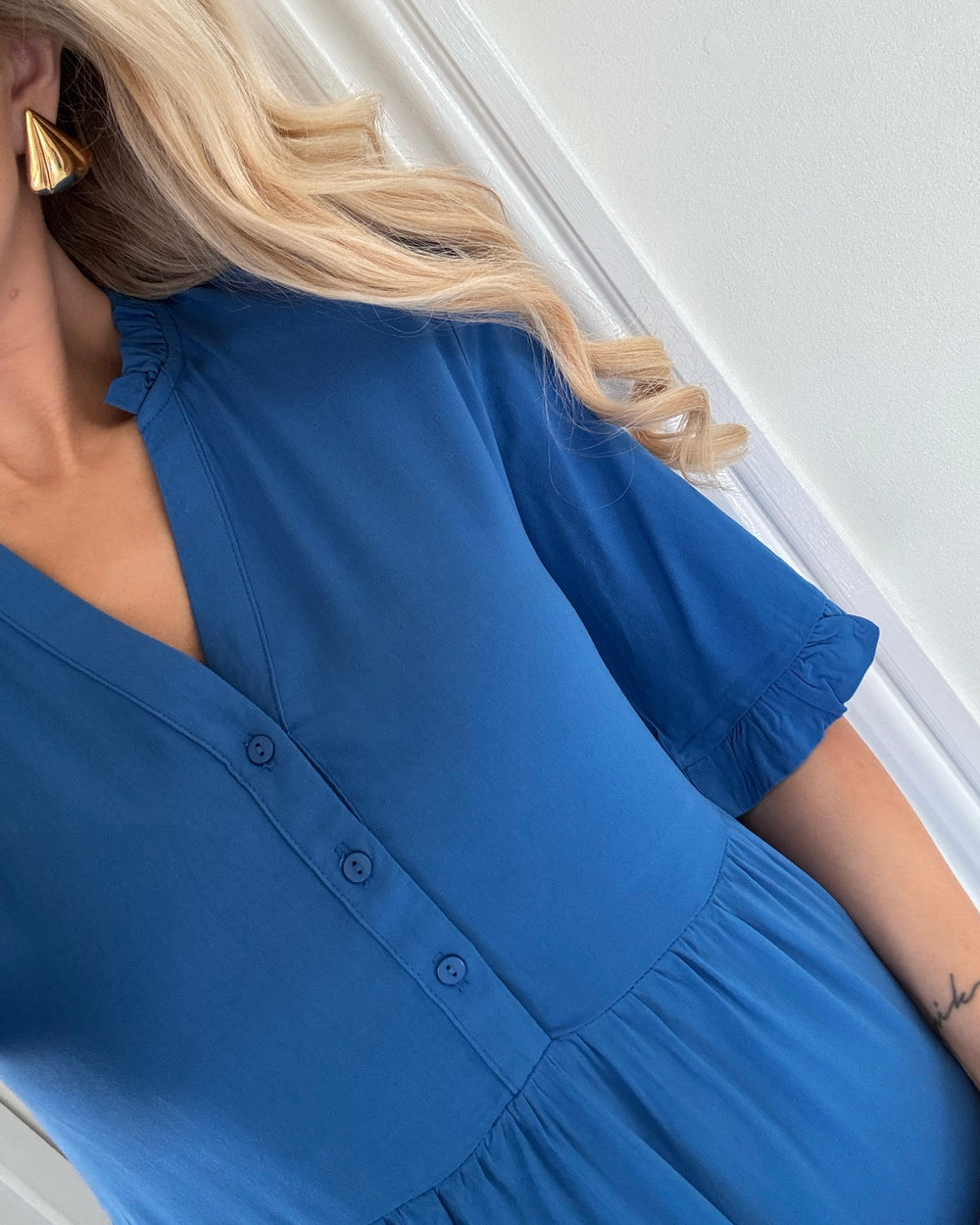 Vero Moda kjole easy joy 2/4 frill calf nebulas blue