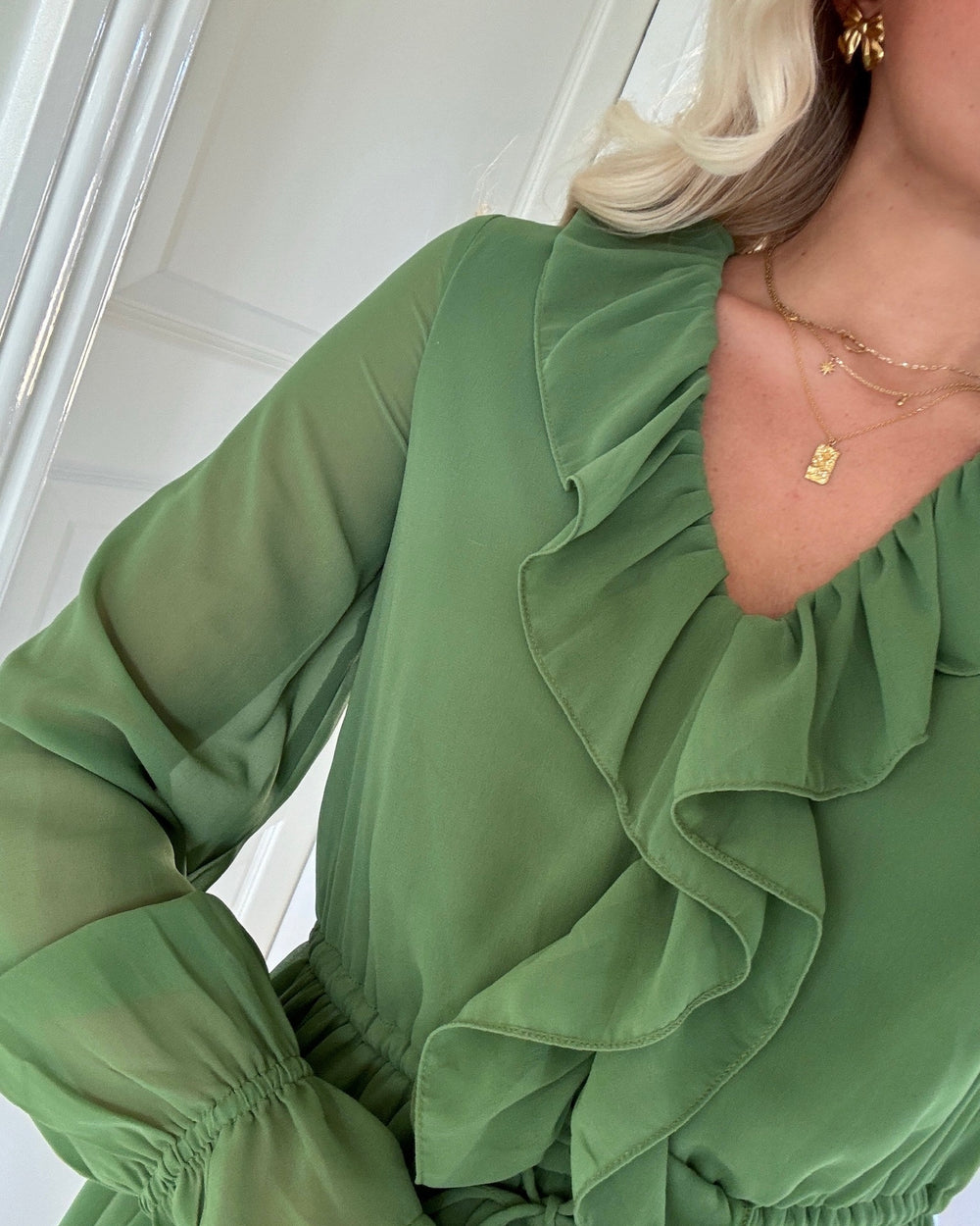 Vero Moda kjole tass ss o-neck 7/8 hedge green