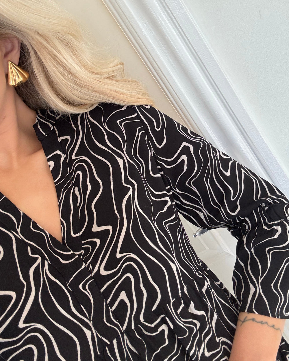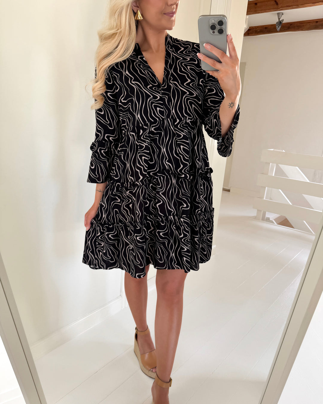 Vero Moda kjole smilla 3/4 short sandshell/big dot black