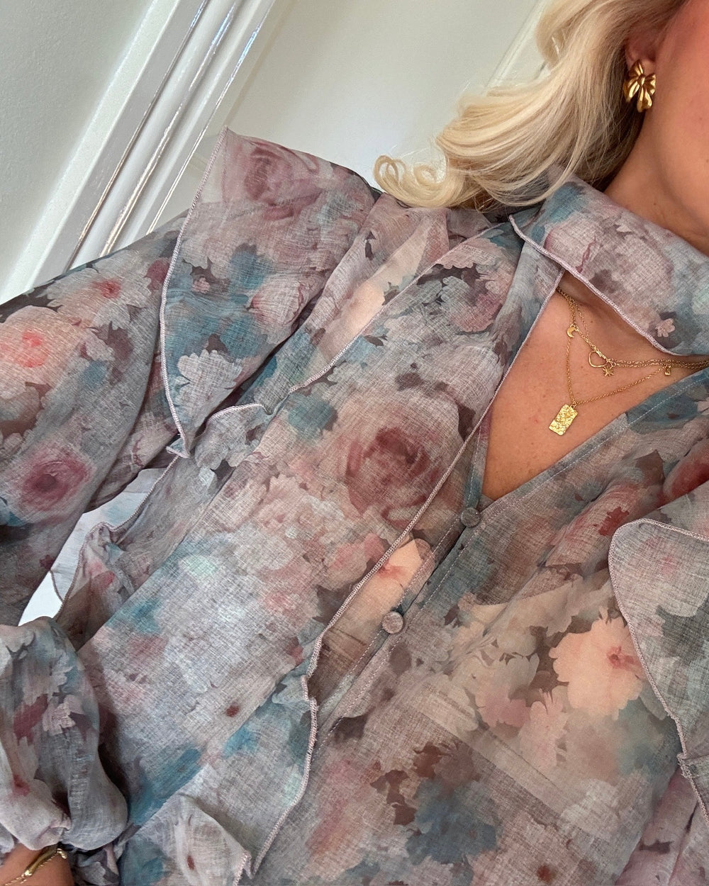 Vero Moda sabrina top ls scarf flounce burlwood/faded flower