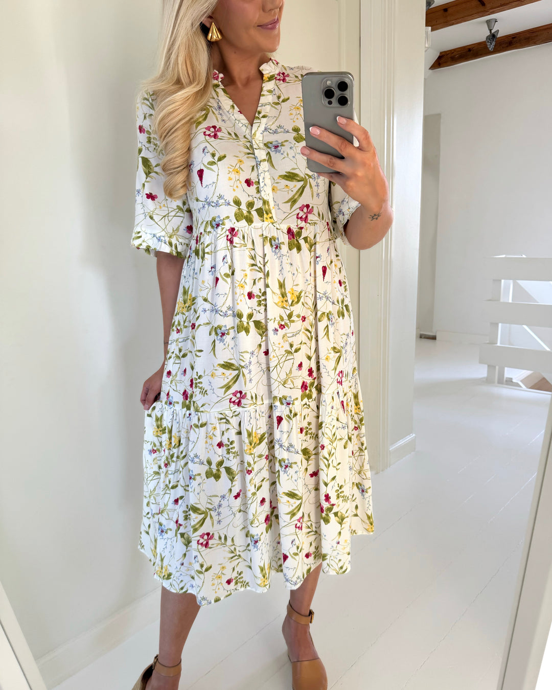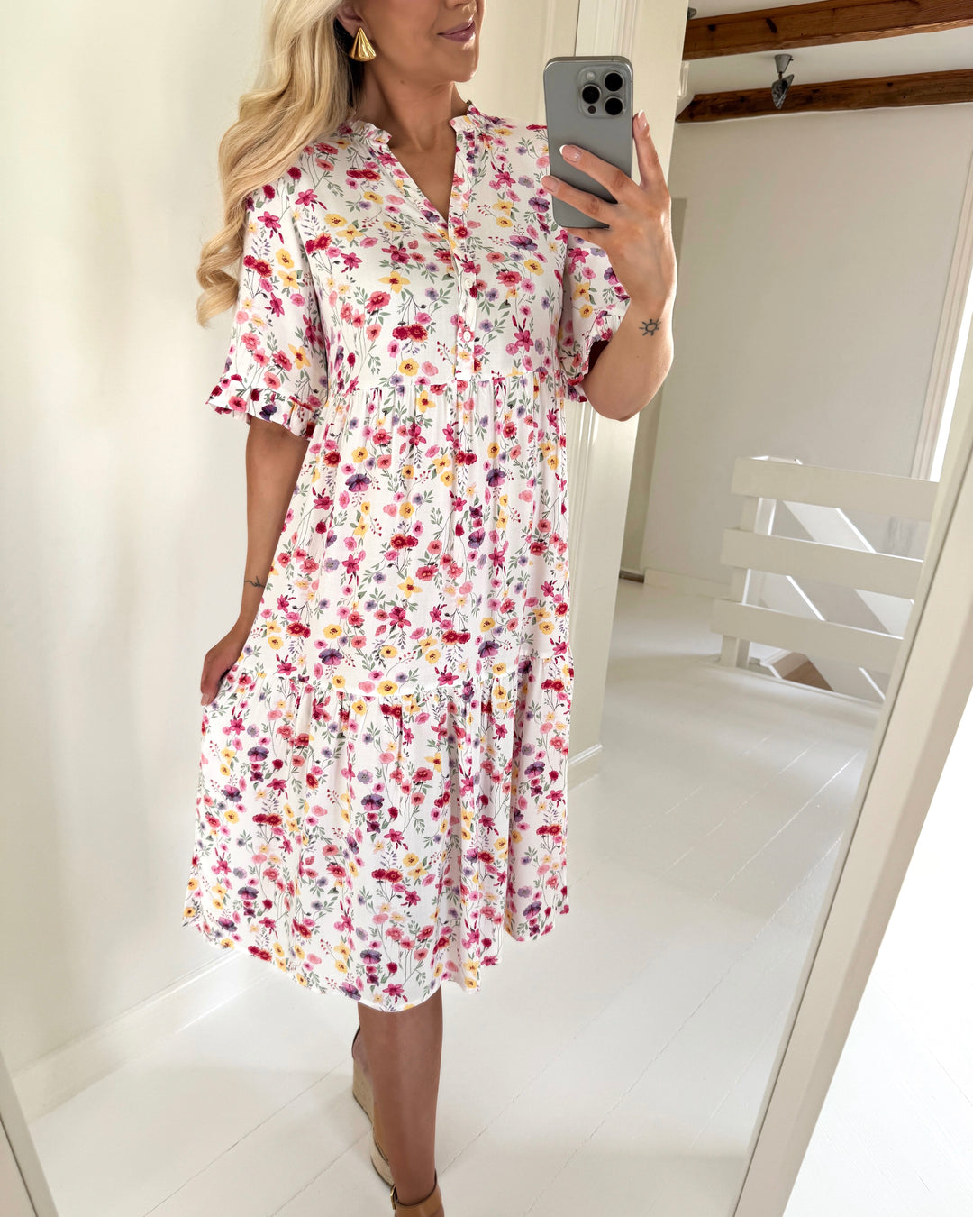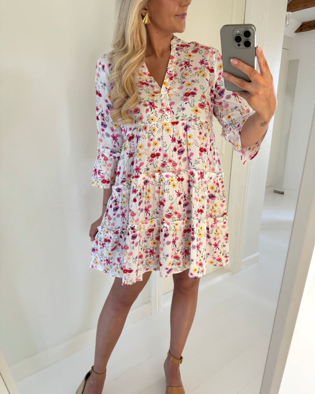 Vero Moda kjole easy joy 2/4 frill calf cloud dancer lisa