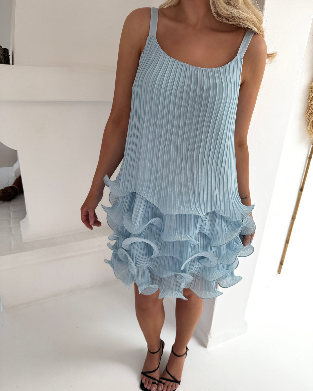 Vero Moda kjole cimmie frill singlet skyway - FORUDBESTILLING LEV. UGE 17
