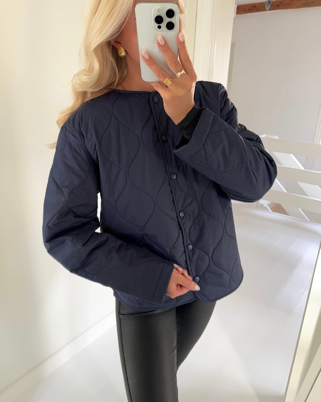 Vero Moda jakke sabine ls quilted button navy blazer/mocha mousse check