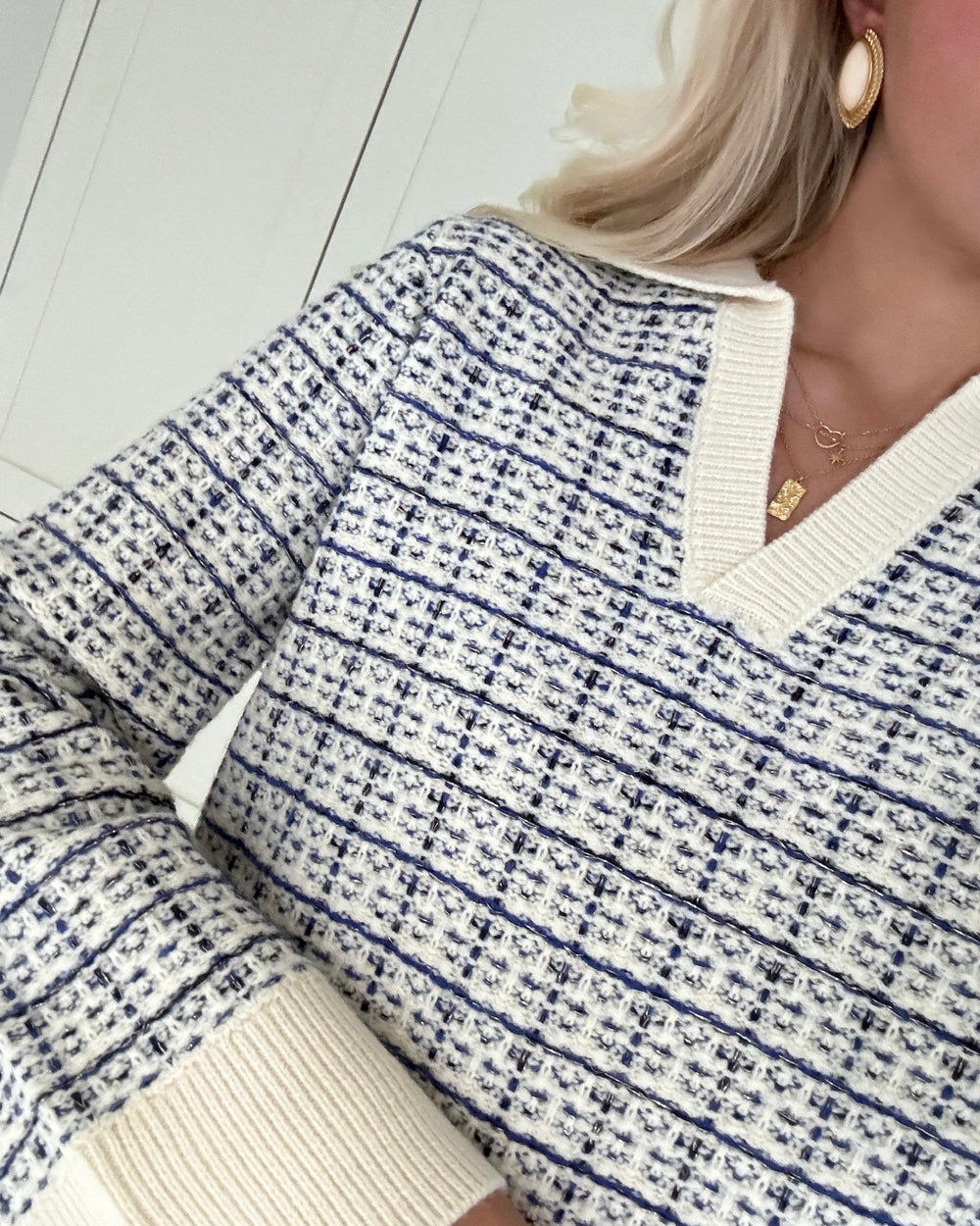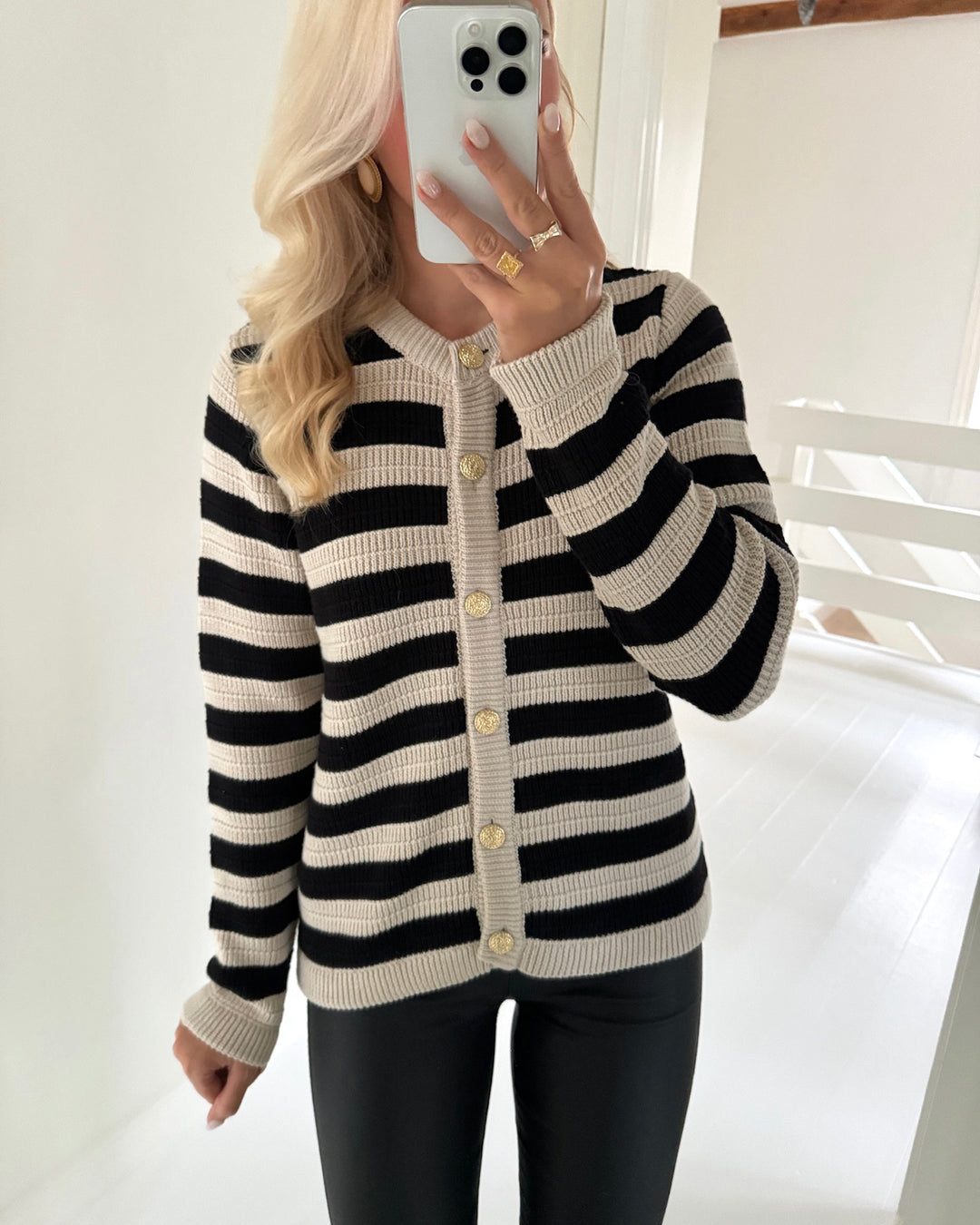 Y.A.S striktrøje lena ss knit birch/black stripes