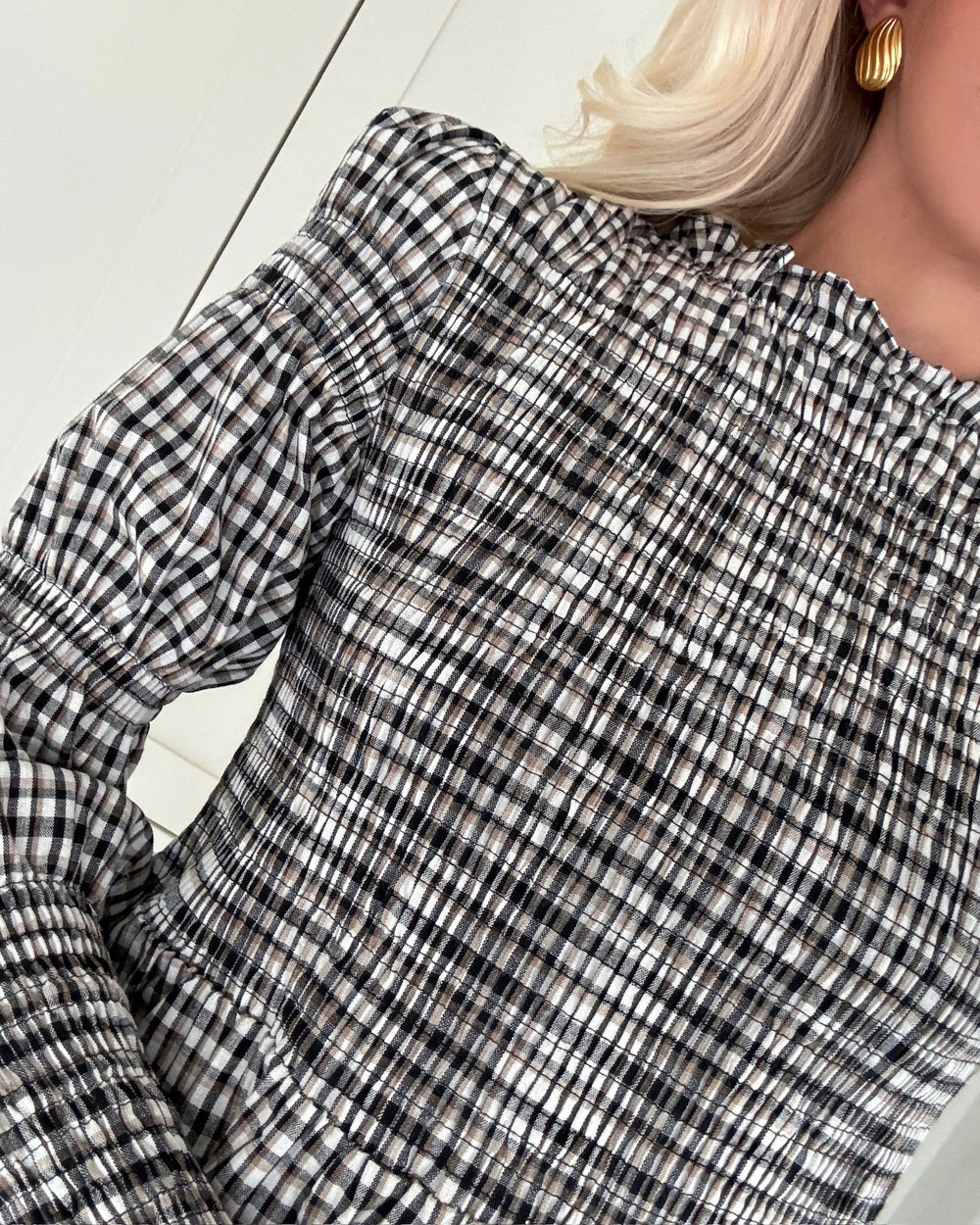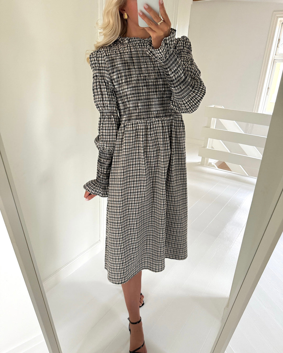 Y.A.S kjole chemma ls smoch midi eggnog/checks - FORUDBESTILLING LEV. UGE 50