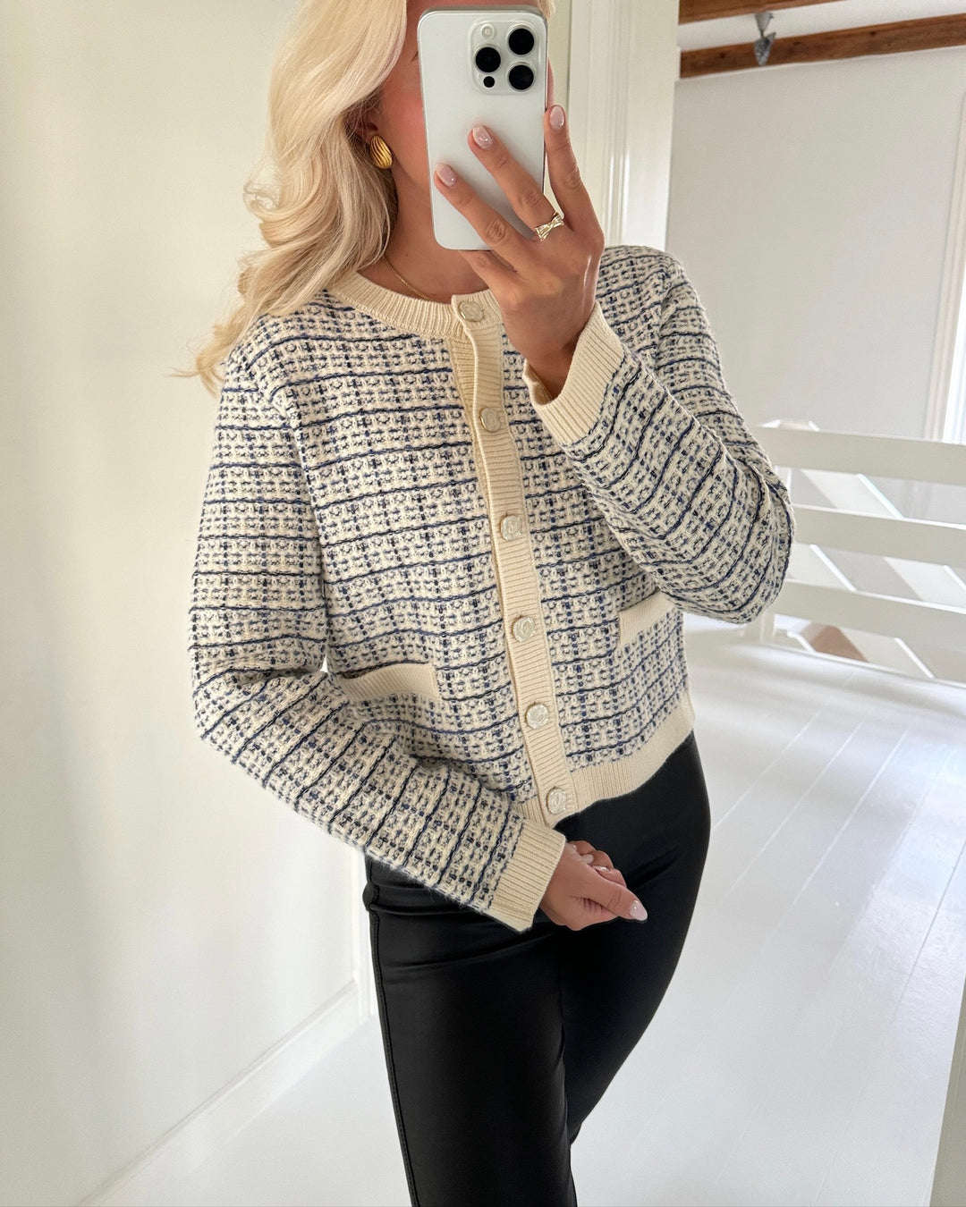Y.A.S cardigan livia ls short knit birch/dazzling blue - FORUDBESTILLING LEV. UGE 48