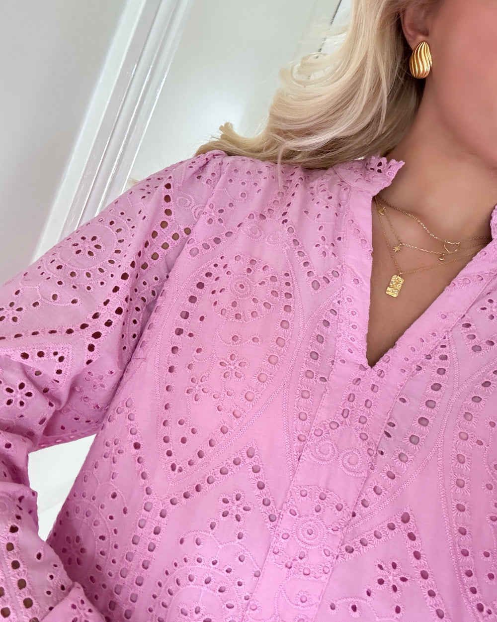 Y.A.S skjortekjole kaya ls long shirt rethink pink/tibetan red - FORUDBESTILLING LEV. UGE 49/50