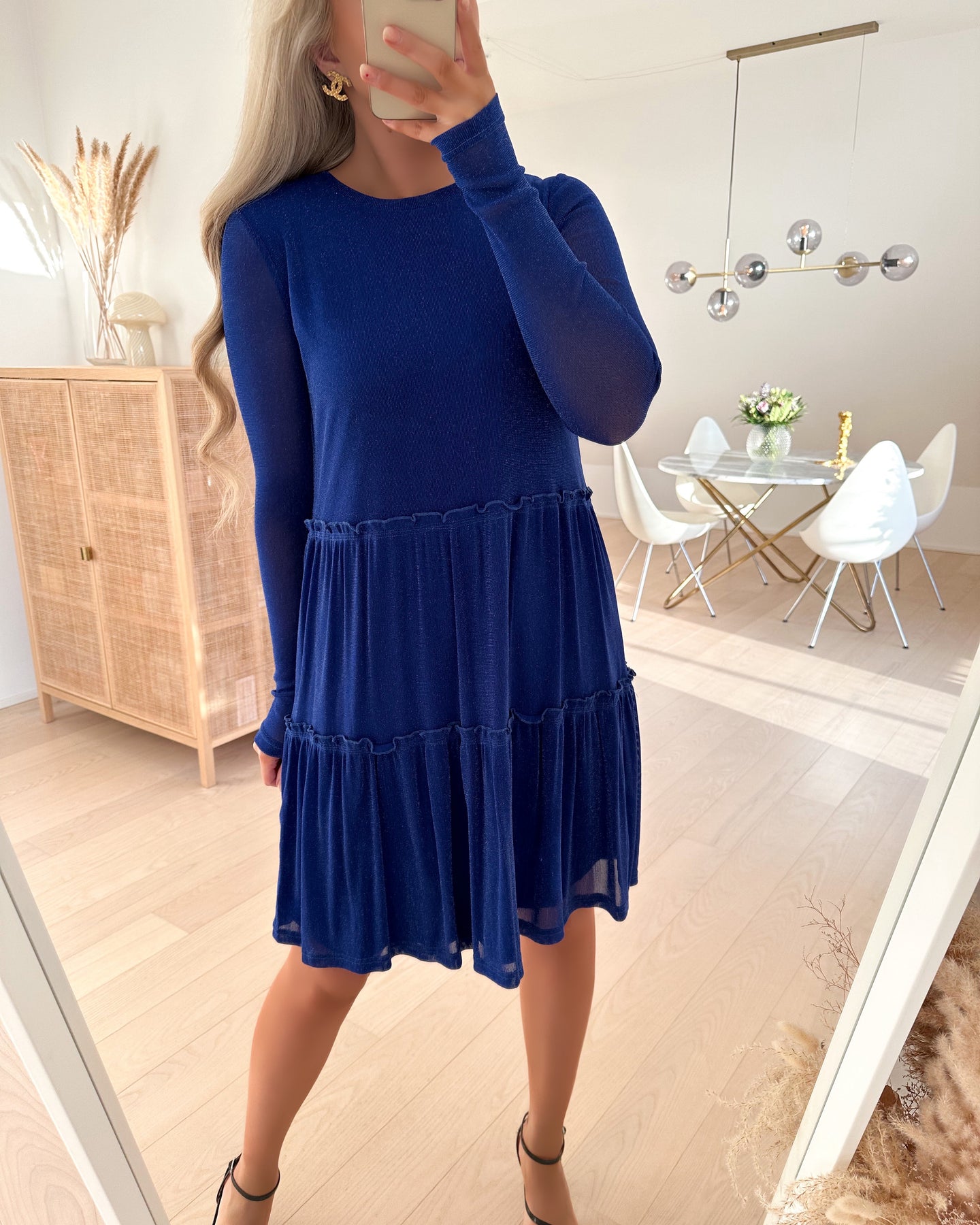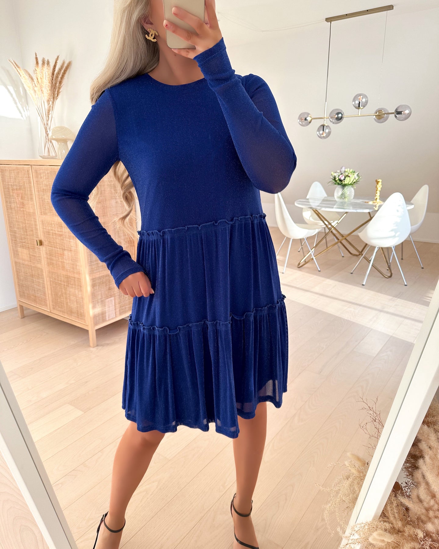 Kjolen har rund hals, lange ærmer samt de fineste flæsedetaljer. Den har dertil to lag og er derfor ikke gennemsigtig.