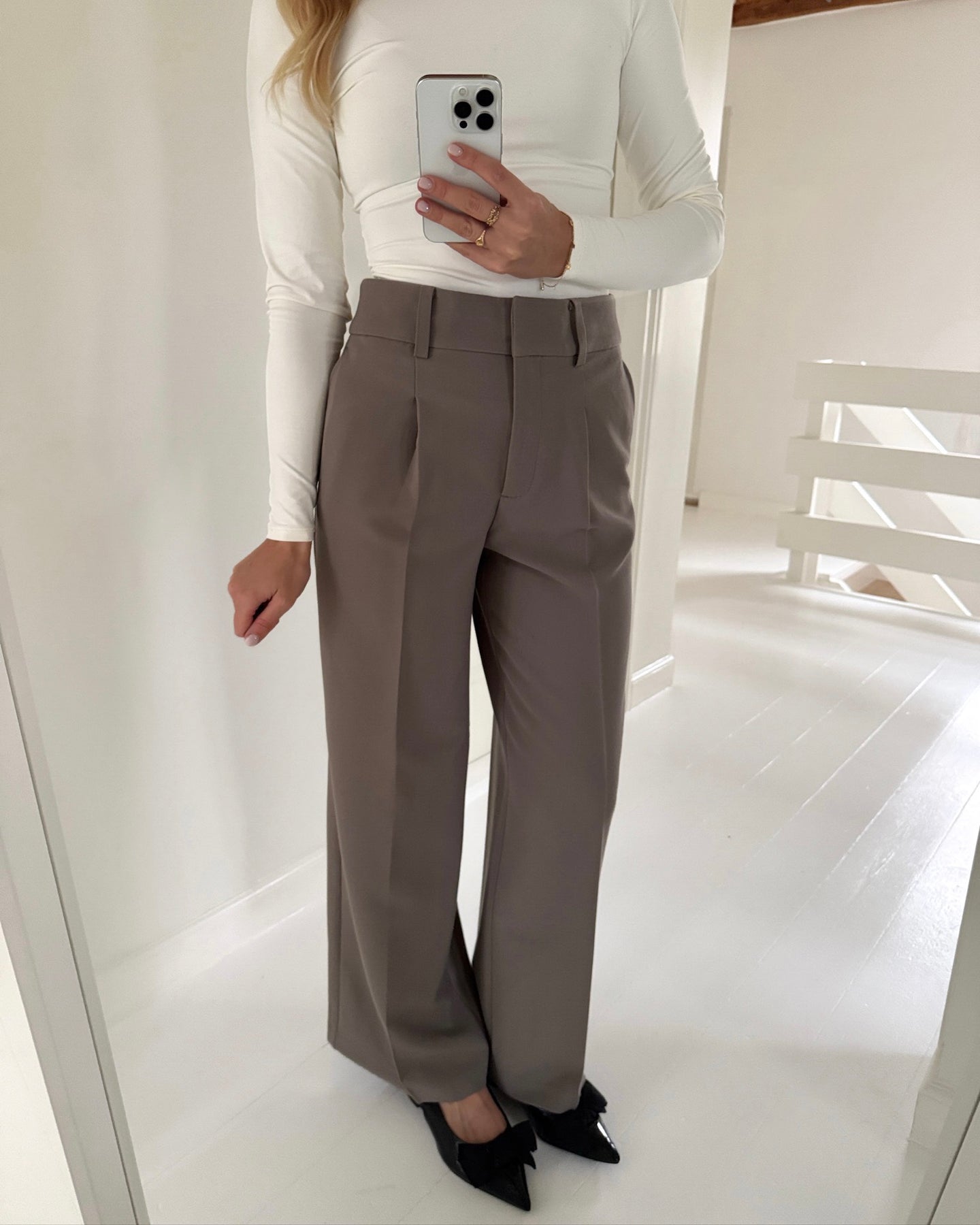 Højtaljede bukser i flotteste brune farve.
