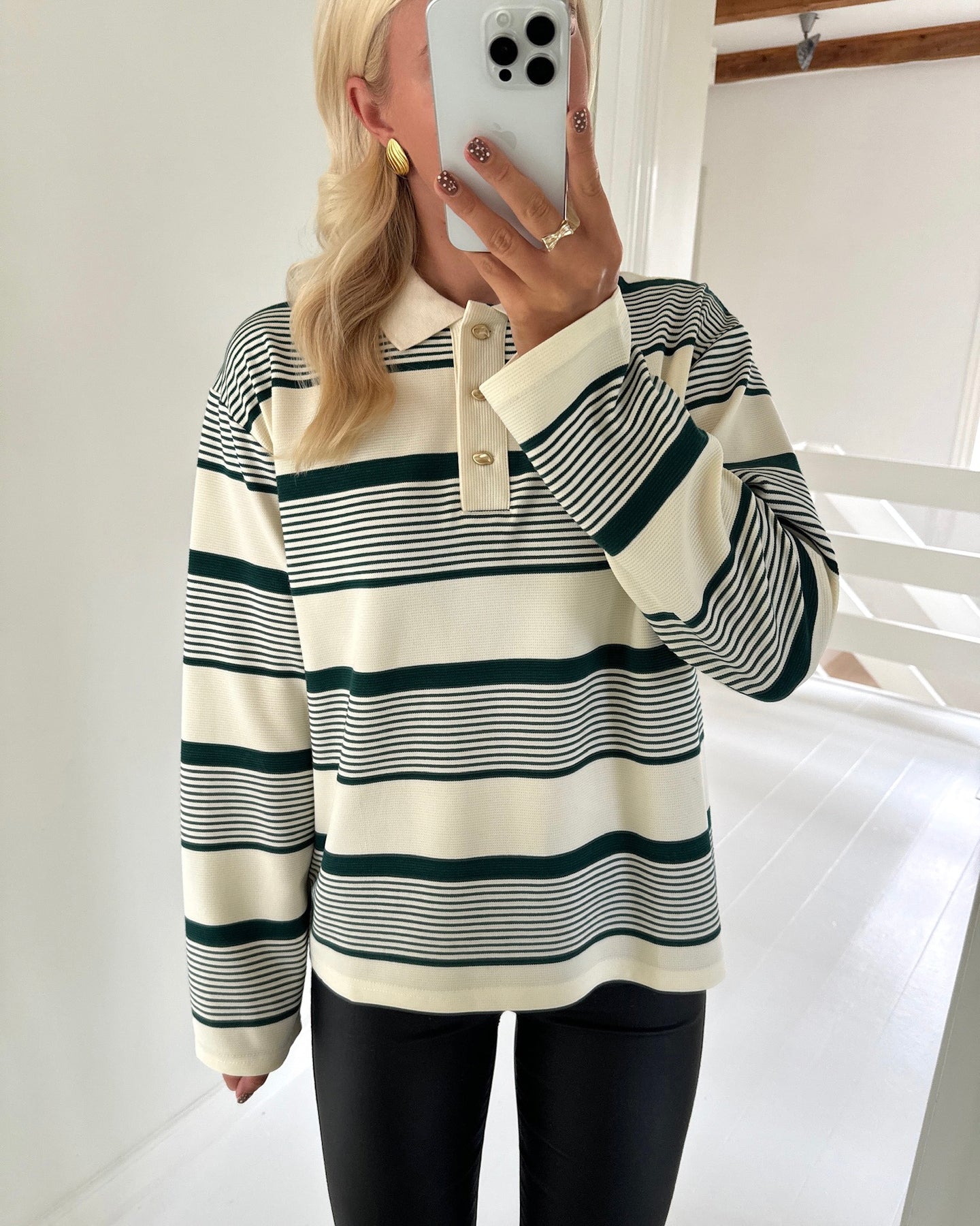 Utrolig pæn polo i en lækker råhvid farve med grøn striber.