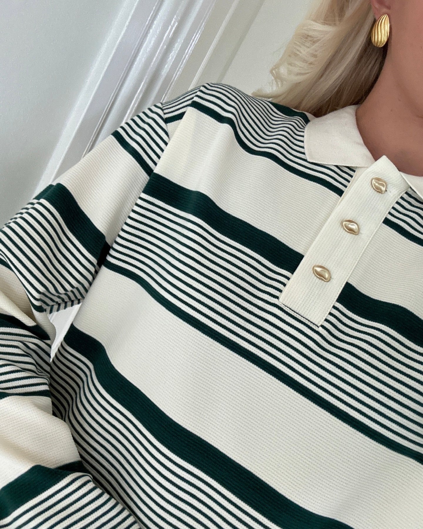 Poloen har lange ærmer, en fin krave og tre guld knapper.