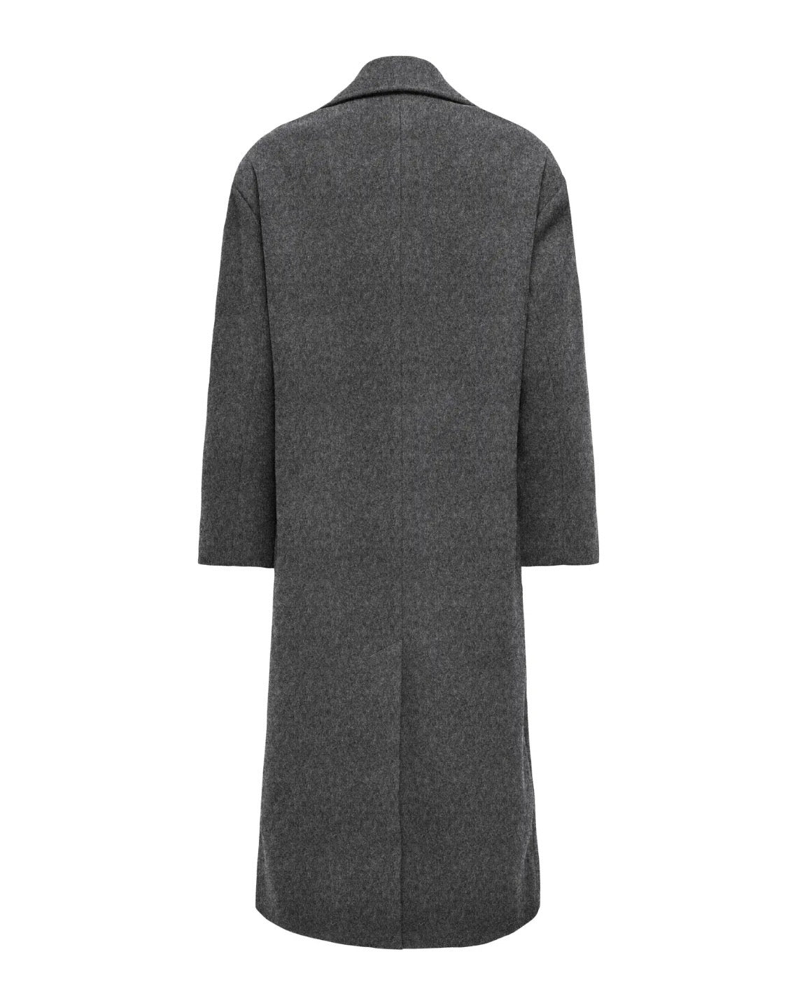 Frakken lukkes med knapper foran, har lommer i siden og en fin krave.