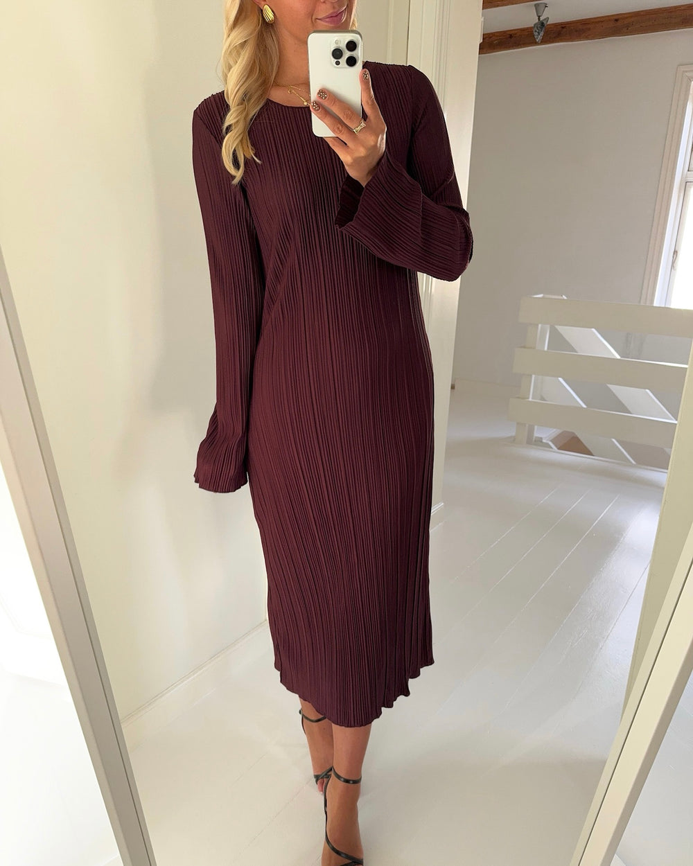 Kjolen har rund hals, lange løse ærmer og en skøn rummelig pasform.