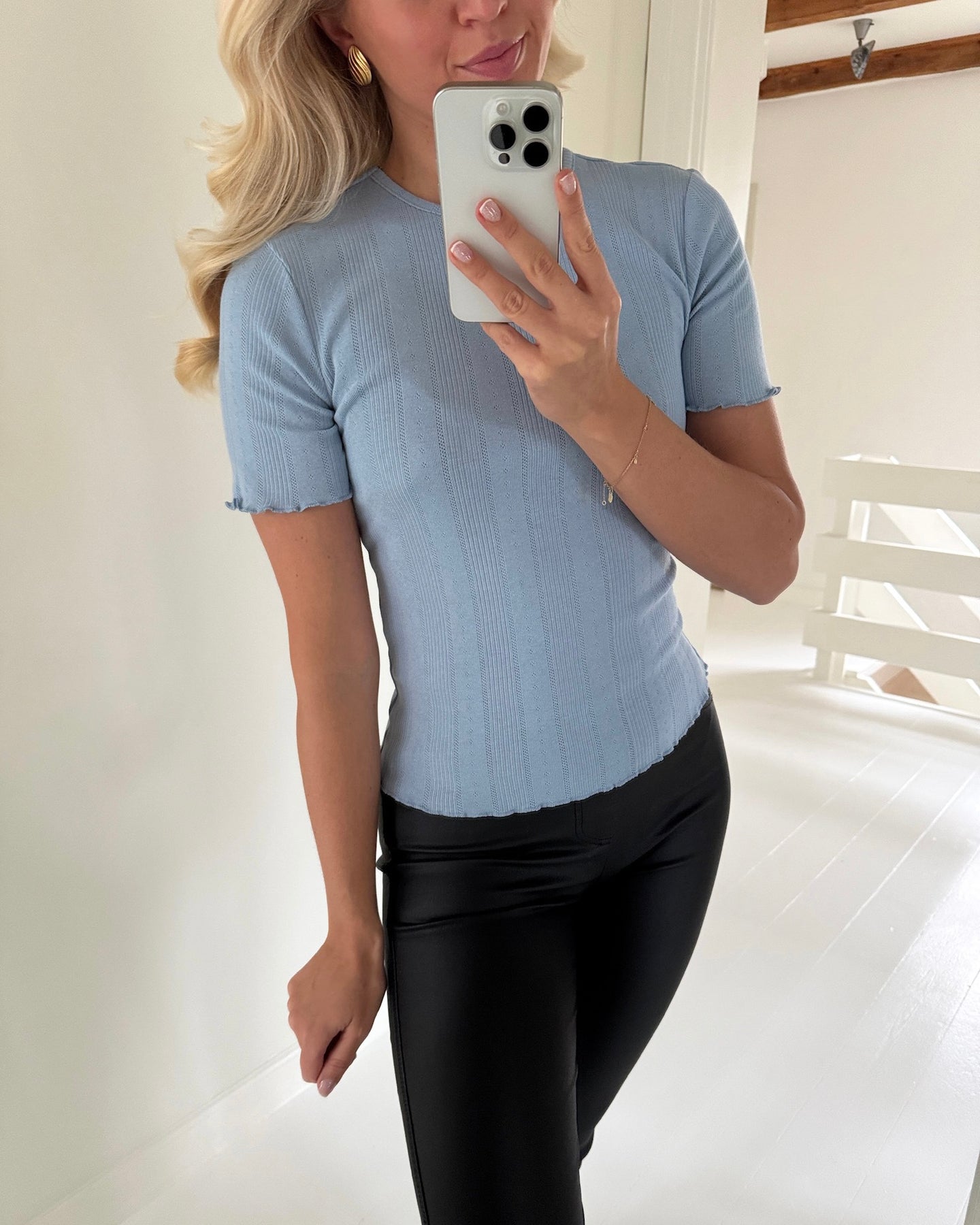 Sødeste kortærmet bluse i den fineste blå farve.