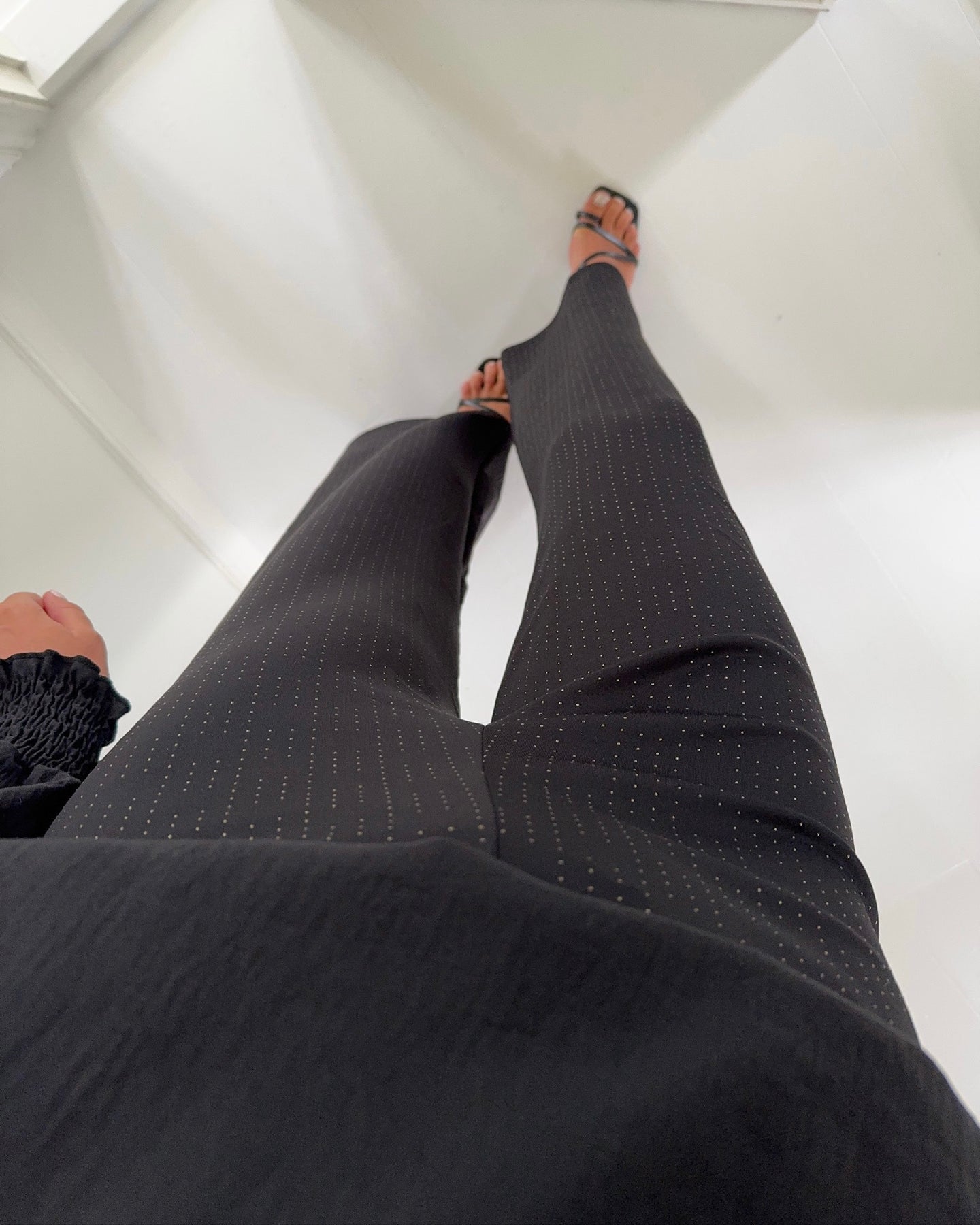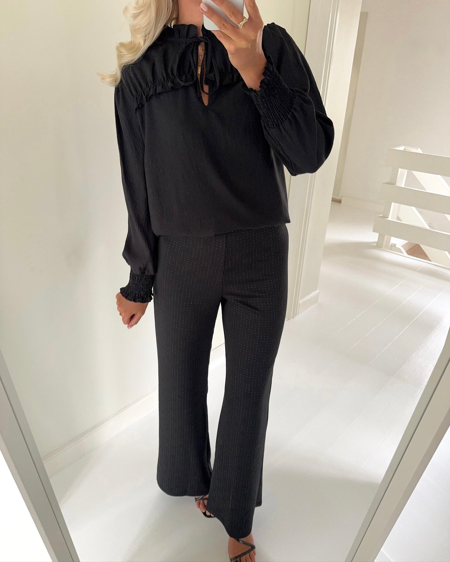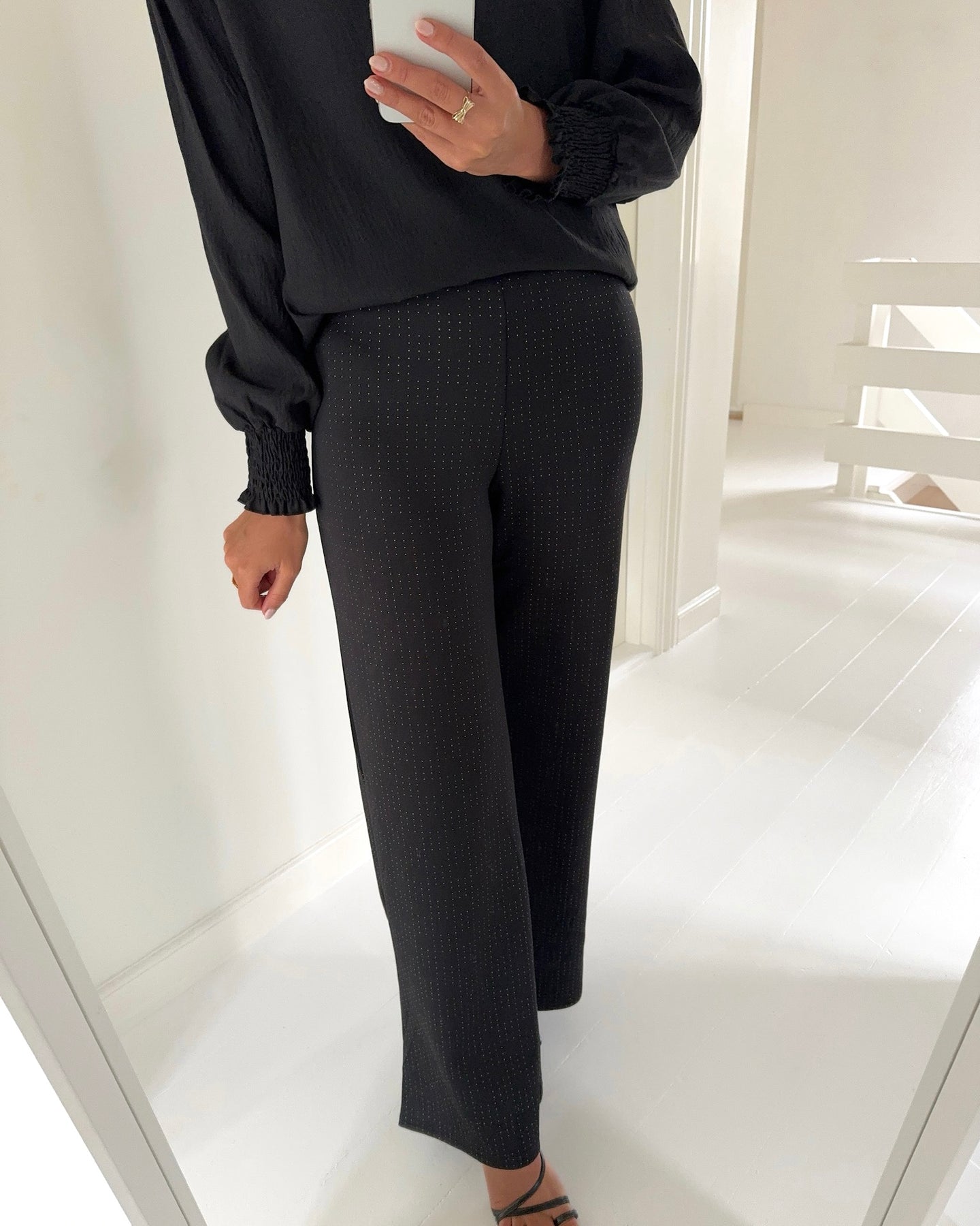 Skønne bukser i klassisk sort med fine gulddetaljer.