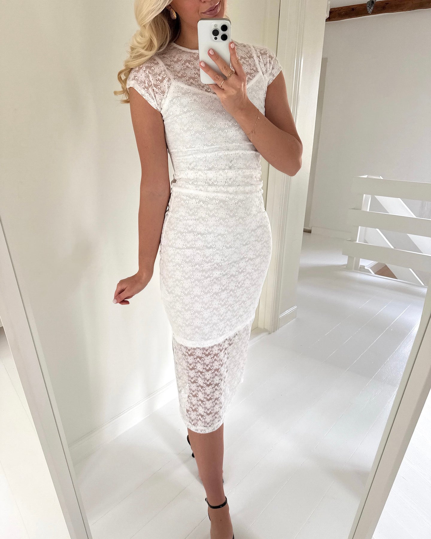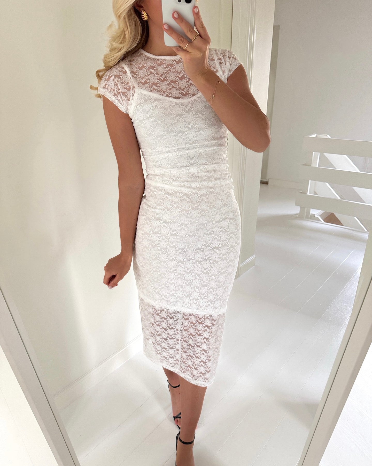 Smuk kjole i en fin hvid farve med søde blonde-detaljer.