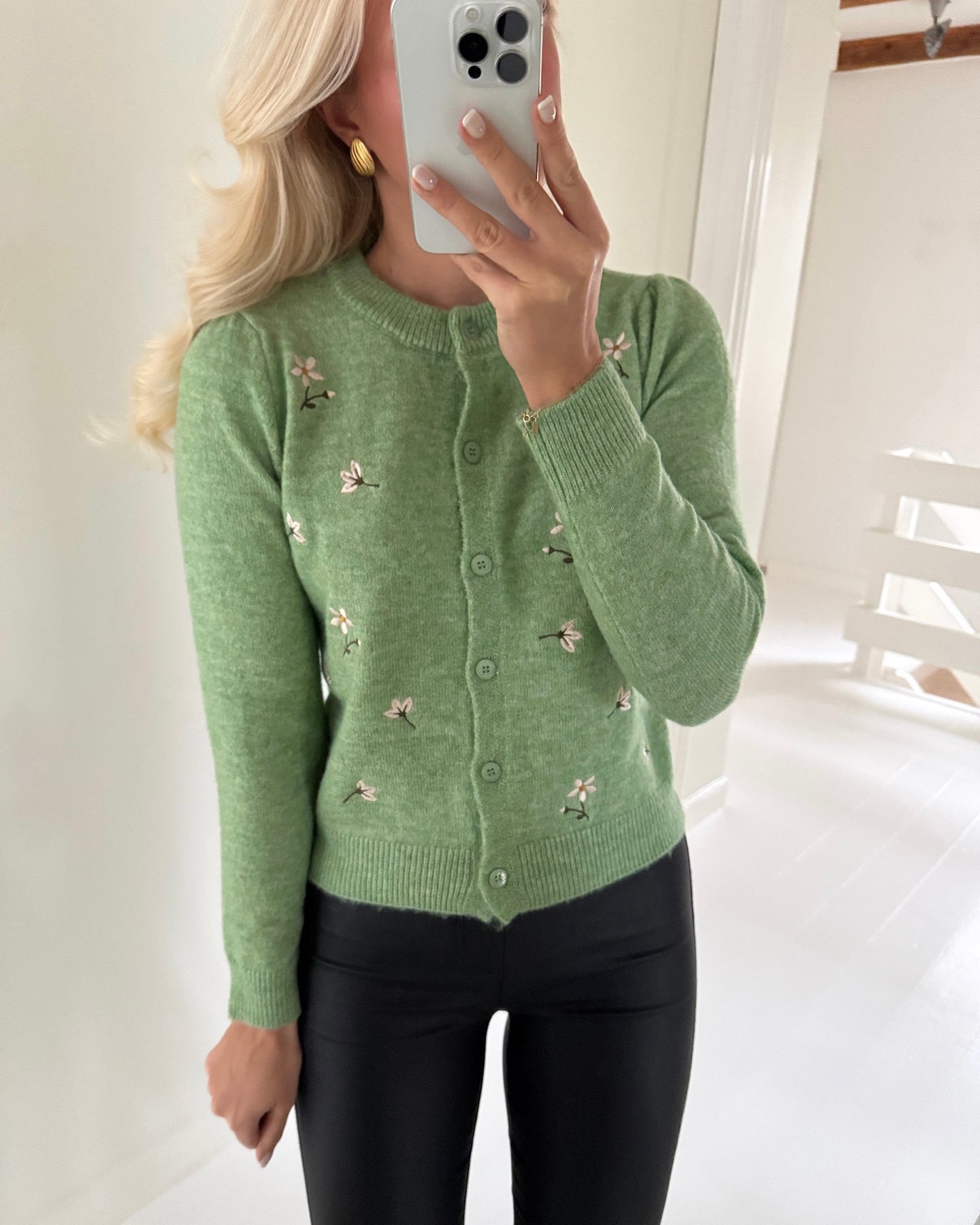 Super flot lysegrøn cardigan med knapper ned af fronten og blødt materiale.