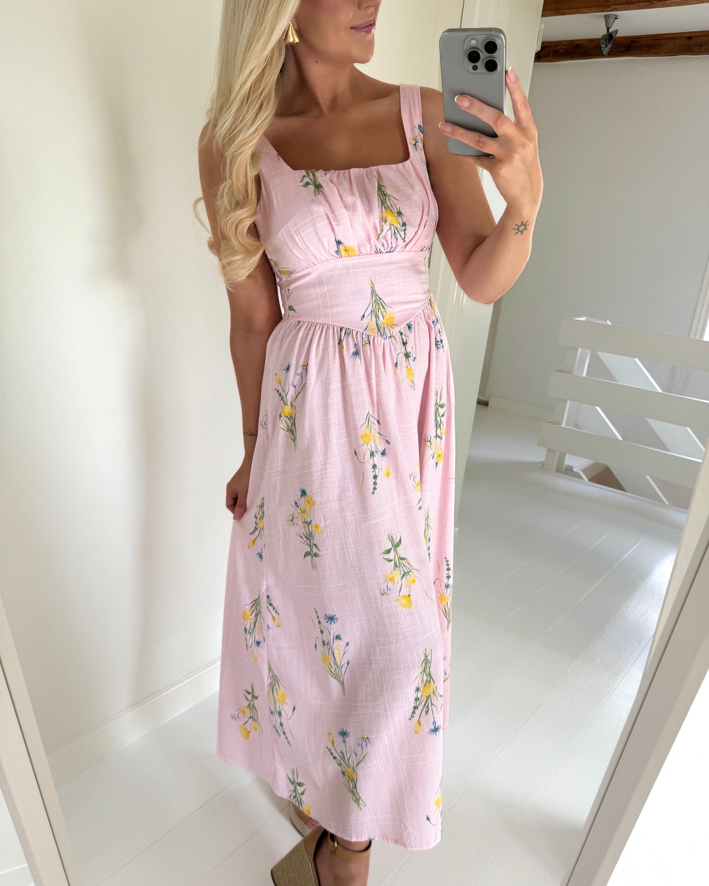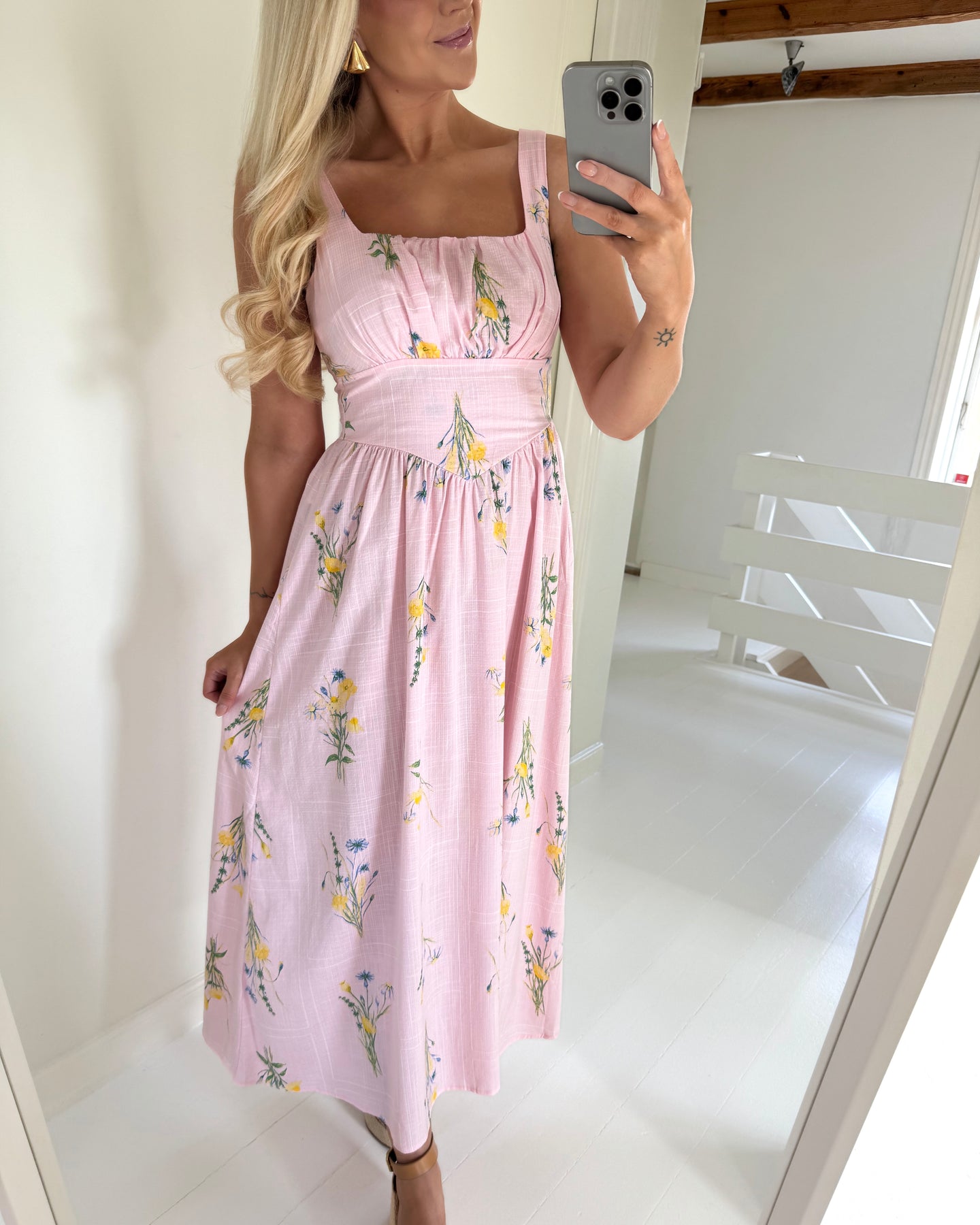 Sød kjole i den fineste rosa farve med skønt blomsterprint.