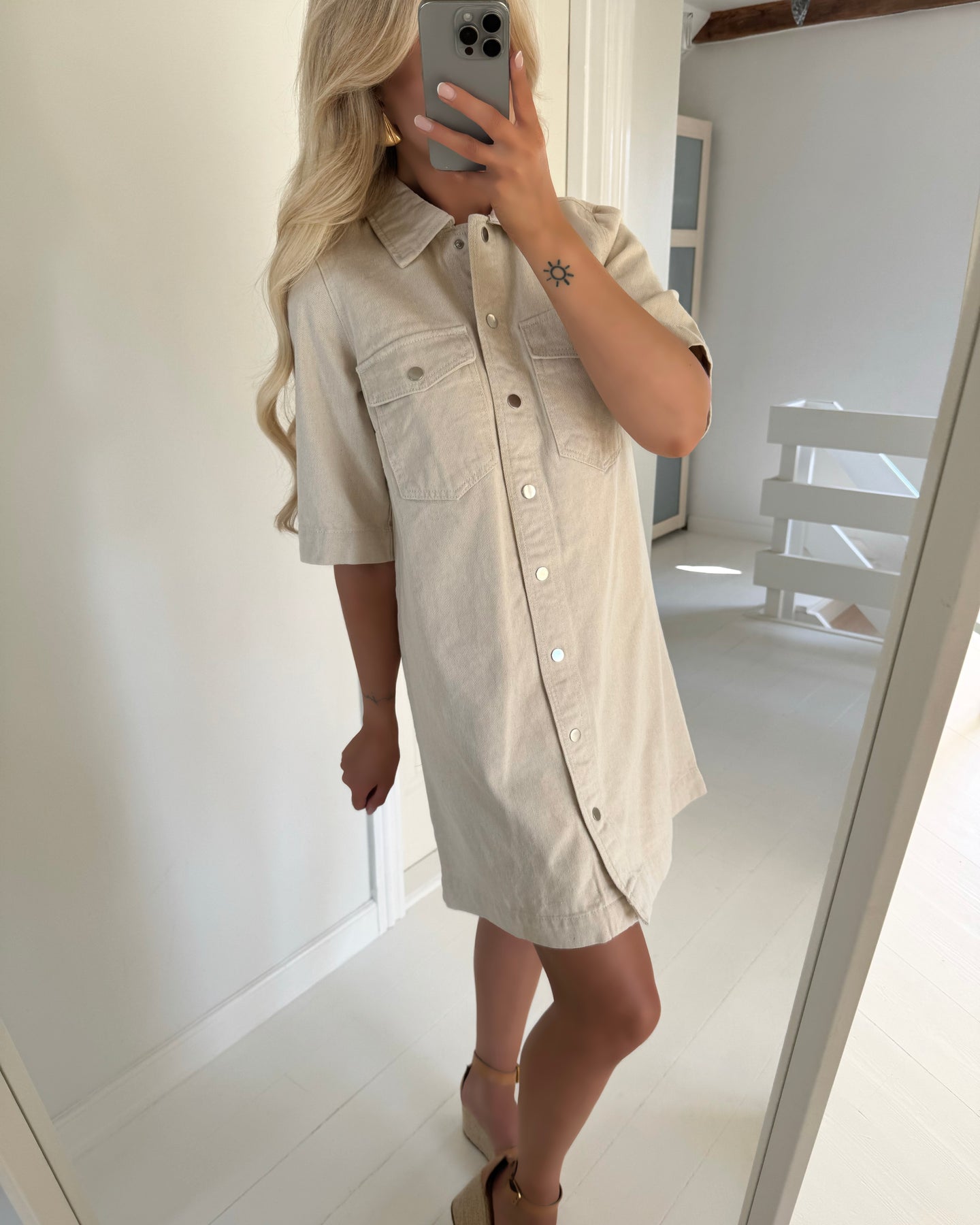 Feminin denimkjole i en fin beige farve.