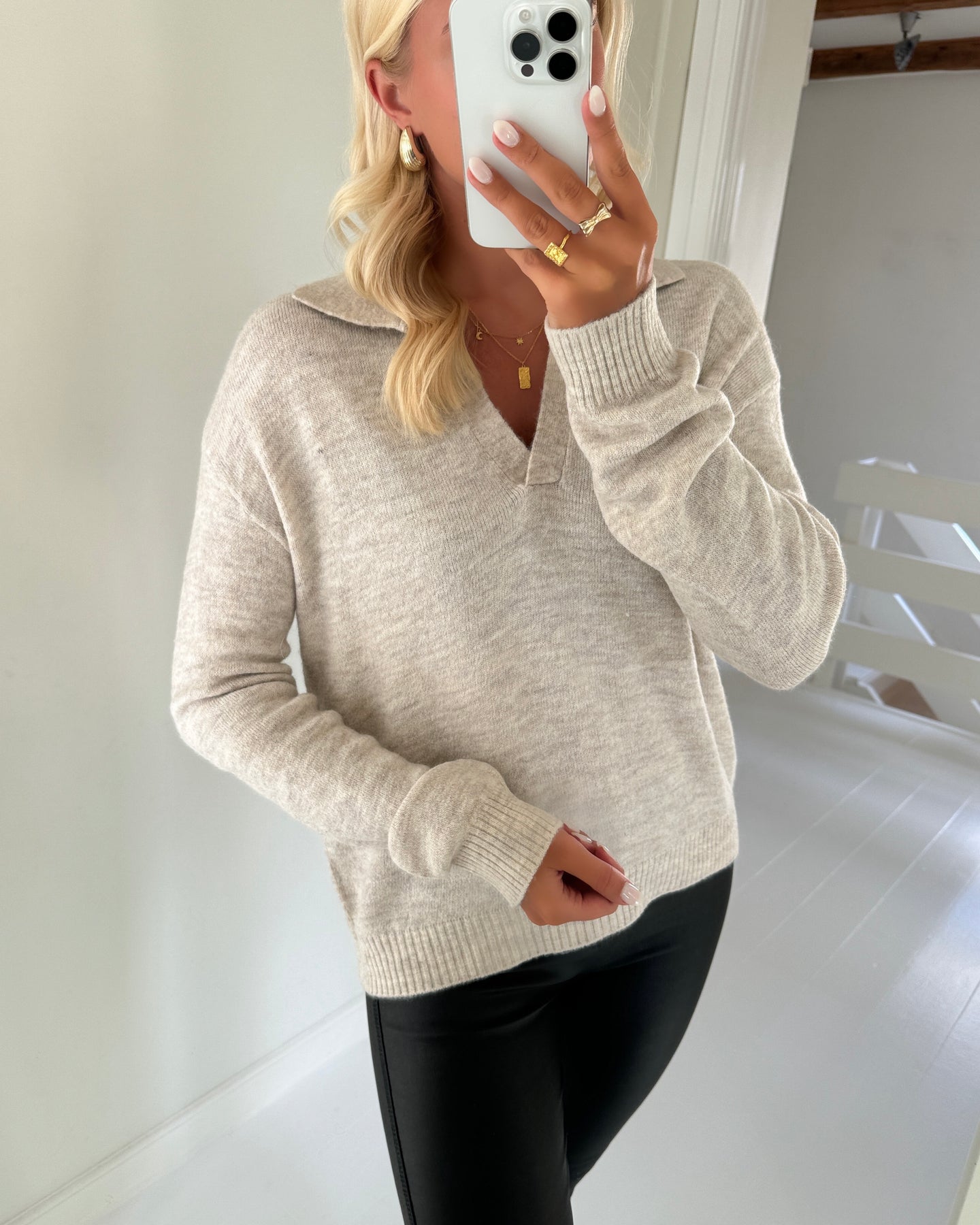 Skøn striktrøje med en sød polo krave.