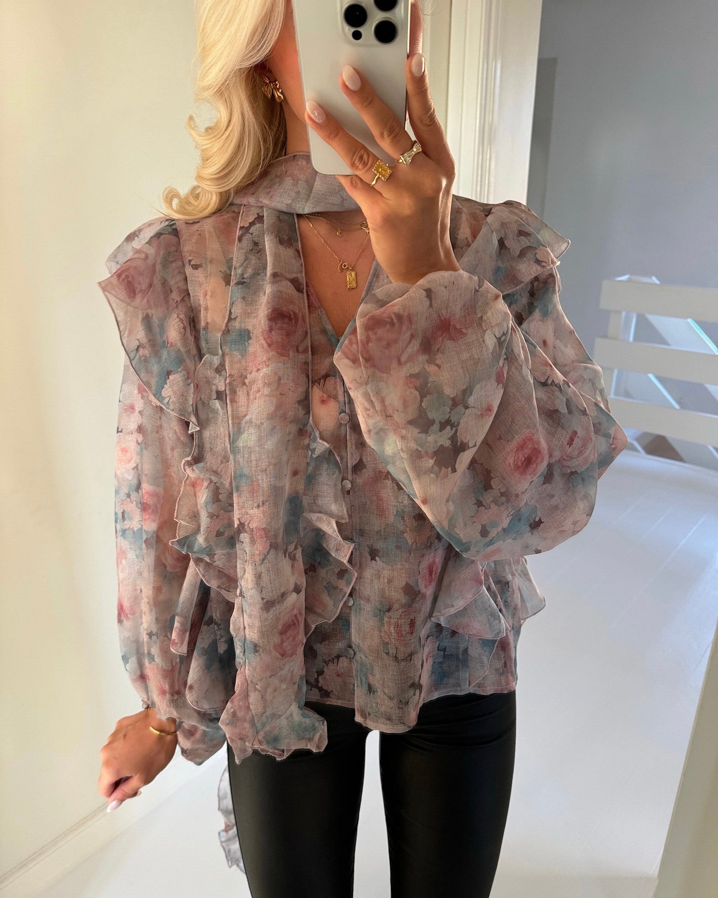 Vero Moda sabrina top ls scarf flounce burlwood/faded flower